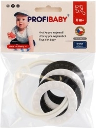 Žiedai su 4 formomis, juodai balti, plastikiniai, nuo gimimo