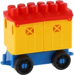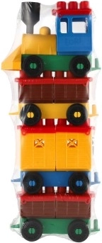 - Plastikinė kaladėlių konstrukcija – traukinys su vagonais