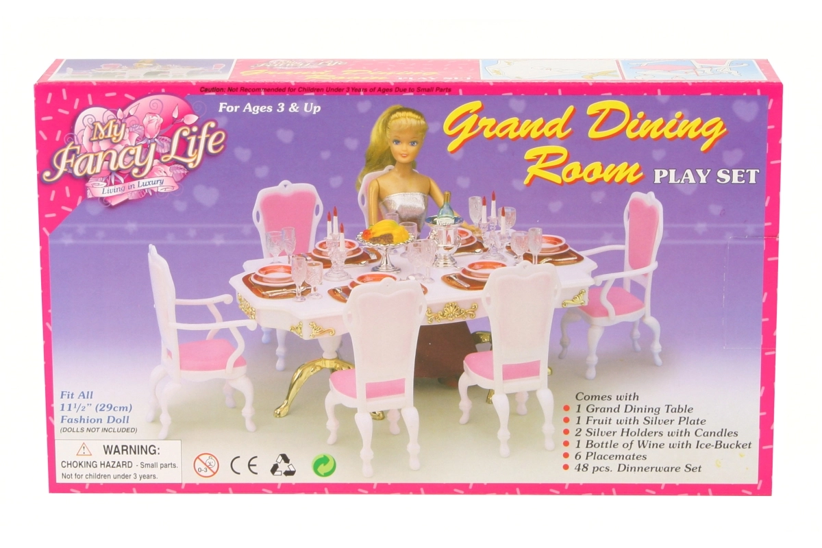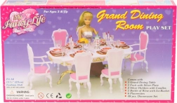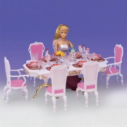 Stilingas Glorie rinkinys lėlių stalui pavers bet kurį kambarį elegantiška valgomąja. Rinkinyje yra didelis plastikinis stalas, 6 kėdės (2 su porankiais) ir gausi stalo serviruotė, įskaitant taures, lėkštes ir stalo įrankius. Tinka kūrybiniam žaidimui vaikams nuo 3 metų.