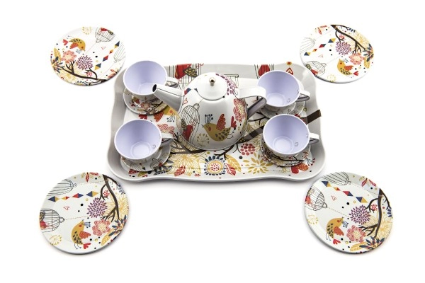 Stilingas skardinis arbatos rinkinys pradžiugins kiekvieną mažąją šeimininkę. Leidžia rengti smagius arbatos vakarėlius, skatina vaidmenų žaidimus ir vaizduotės ugdymą. Rinkinį sudaro 15 dalių ir jis idealiai tinka vaikams nuo 3 metų.