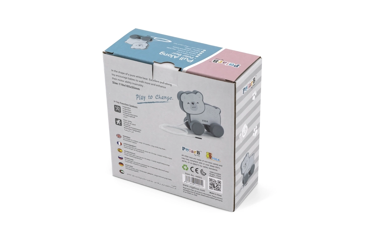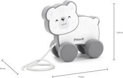 Atraskite tradicinio žaislo džiaugsmą su šiuo mediniu traukiamu žaislu Ledinis lokys. Jis sukurtas patogiam paėmimui ir traukimui, padeda lavinti rankų–akių koordinaciją ir smulkiąją motoriką vaikams nuo 18 mėnesių.