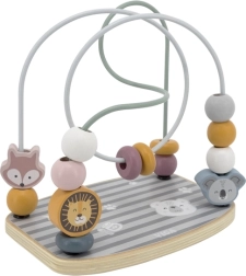 Atraskite medinį karoliukų labirintą, kuris motyvuoja lavinti smulkiąją motoriką ir suteikia edukacinę patirtį mažiesiems. Šis kokybiškas žaislas pagamintas iš natūralios medienos ir naudoja saugius dažus, užtikrinančius saugumą ir estetinį vaizdą. Spalvoti karoliukai ir gyvūnų formos ant vingiuotų vielinių takelių padeda vaikams stiprinti koordinaciją ir smulkiąją motoriką.