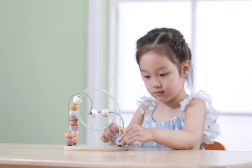 Karoliukų labirintas padeda gerinti akių-rankų koordinaciją ir smulkiąją motoriką, kai vaikai stumdo karoliukus vieliniais takeliais.