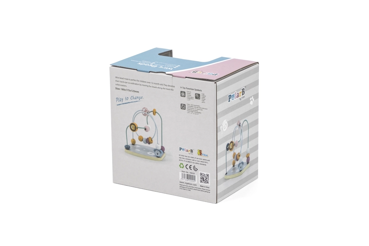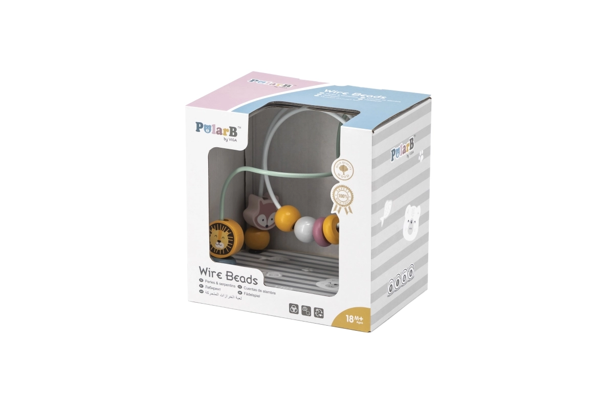 Medinis karoliukų labirintas iš VIGA PolarB yra puikus sensorinis žaislas, kuris padeda vaikams lavinti smulkiąją motoriką ir akių-rankų koordinaciją. Spalvoti karoliukai ir formos ant vielinių takelių moko vaikus valdyti savo judesius per įdomų žaidimą.
