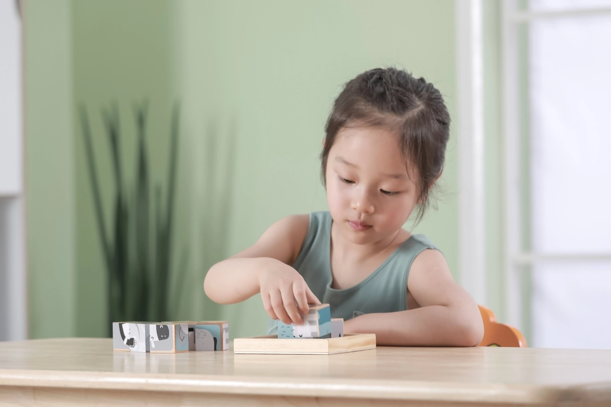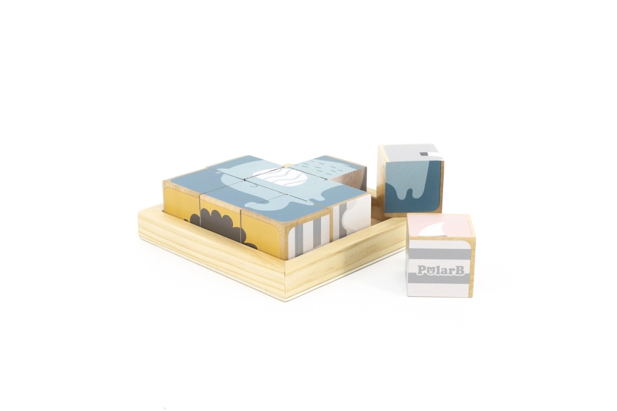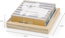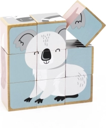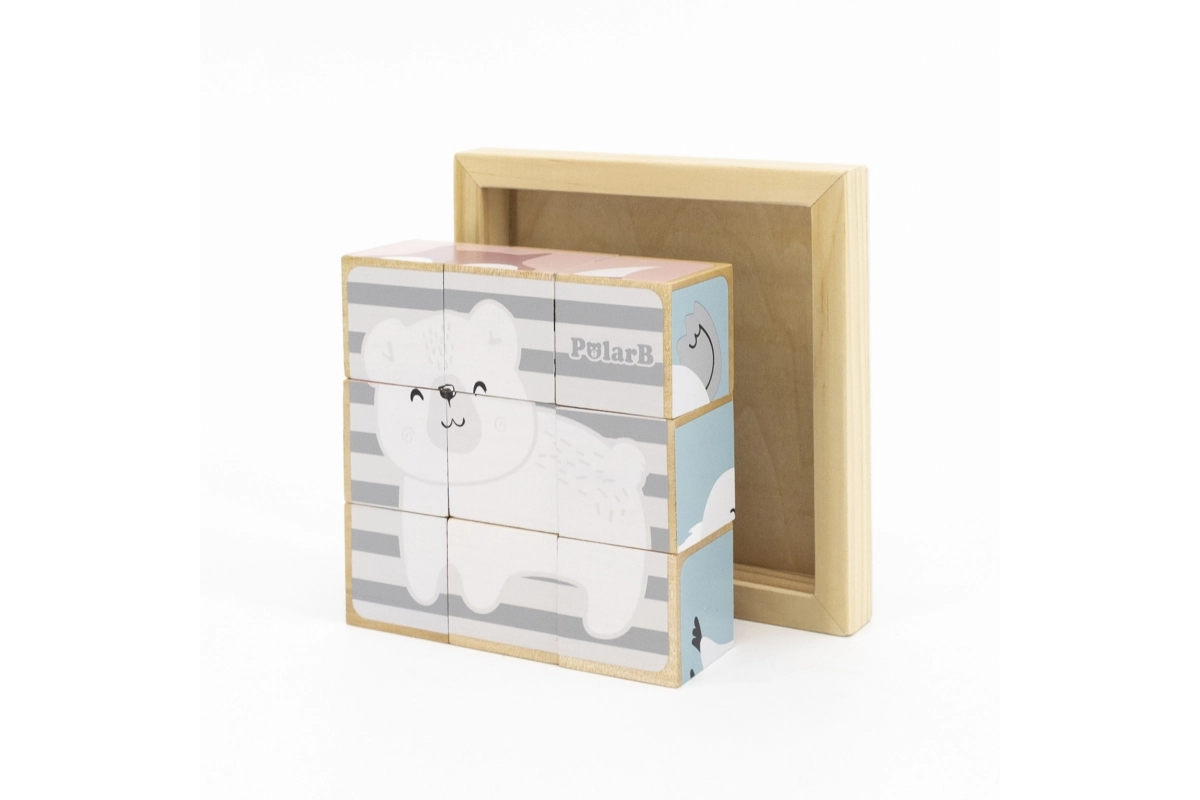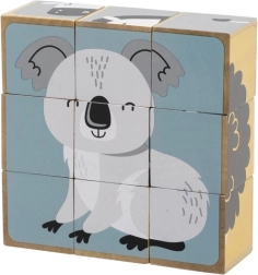 Atraskite laikui nepavaldų medinį žaislą, kuris ir džiugina, ir moko. Iš 9 kubelių sudėsite iš viso 6 skirtingus gyvūnėlių motyvus – pavyzdžiui, meškutį, lapę, koalą, zebrą ar ežiuką. Kiekviena kubelio pusė priklauso kitam paveikslėliui, todėl vaikai lavins dėmesį, kantrybę ir erdvinį mąstymą.