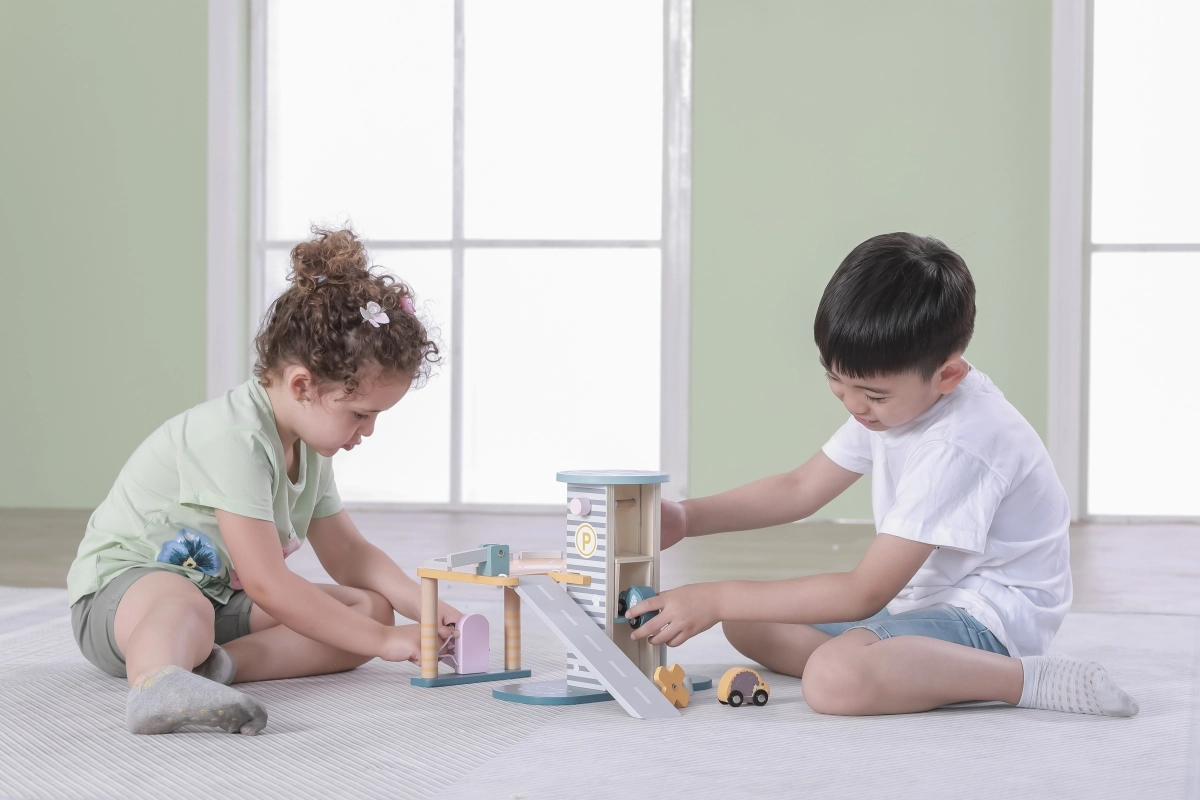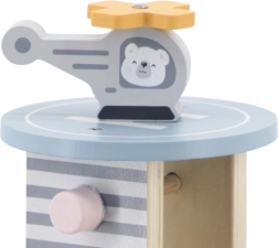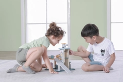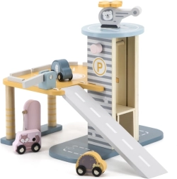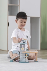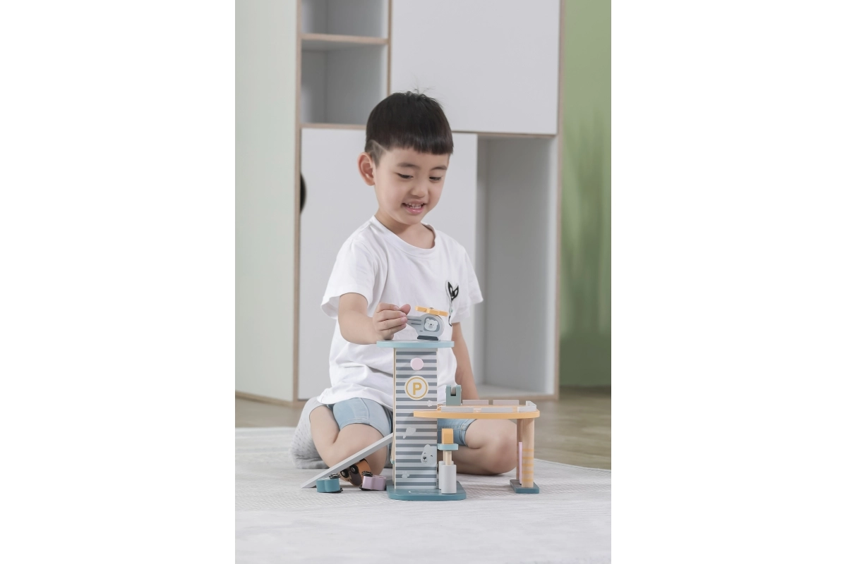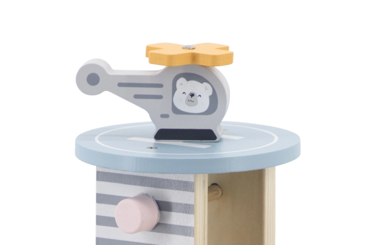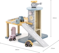 Medinis garažas su sraigtasparniu ir mašinėlėmis – puikus žaislas, kuris skatina vaikų kūrybiškumą ir smulkiosios motorikos lavinimą. Šis interaktyvus žaislas aprūpintas automobilių plovykla, degaline ir liftu. Rinkinyje yra trys mašinėlės ir vienas sraigtasparnis, viskas prislopintų spalvų, tinkančių bet kuriam vaikų kambariui.