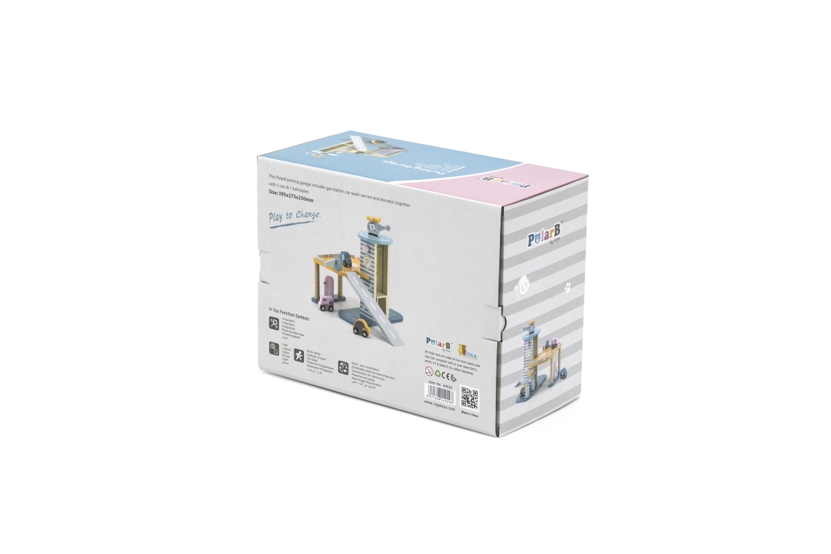 Gražus medinis garažas su sraigtasparniu ir mašinėlėmis iš garsaus gamintojo Viga Toys, skirtas vaikams nuo 3 metų. Puikus pasirinkimas kaip dovana mažiesiems tyrinėtojams.