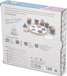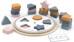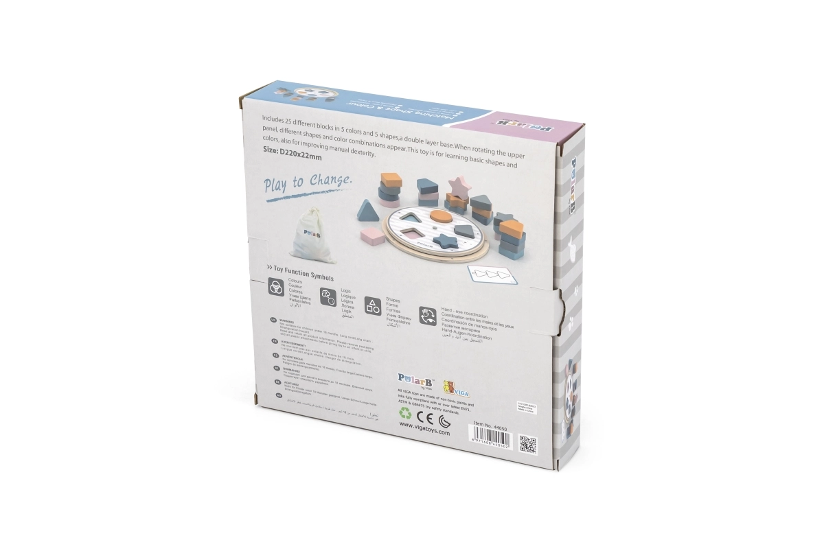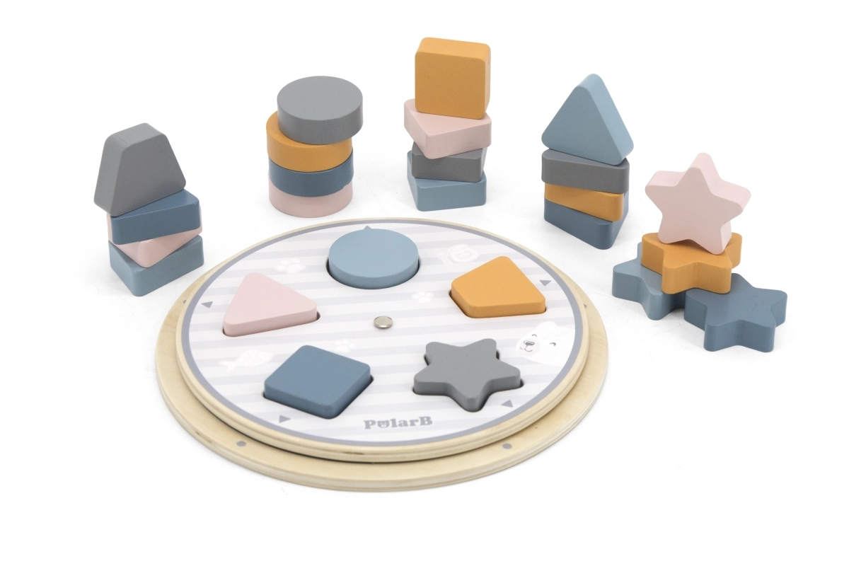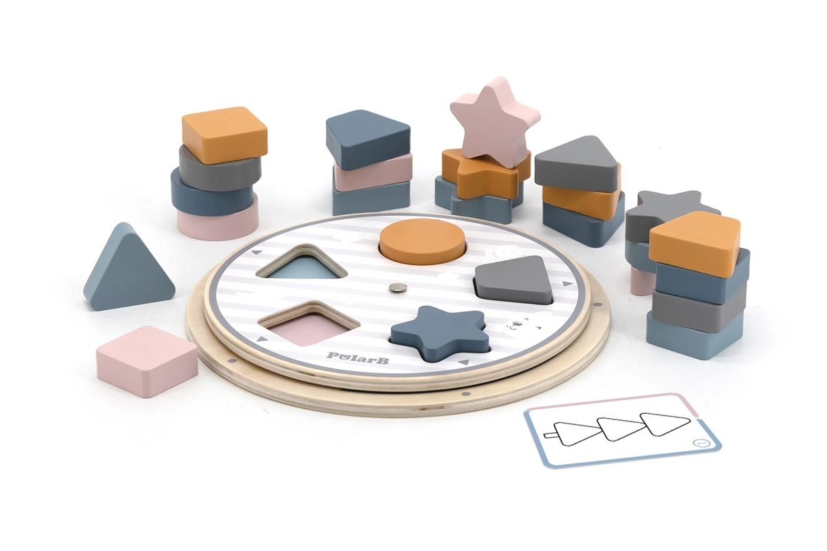 Išmani medinė edukacinė priemonė patiems mažiausiems, jungianti formų ir spalvų rūšiavimą, lavinanti smulkiąją motoriką ir loginį mąstymą. Rinkinyje yra mediniai elementai, besisukanti lenta, kortelės su pavyzdžiais ir tekstilinis maišelis. Žaidimas iš kolekcijos POLARB pagamintas iš kokybiškos medienos, dažytas netoksiškais dažais švelnių pastelinių atspalvių gama ir kartu linksmina, moko ir ugdo vaikus nuo ankstyvo amžiaus.