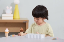 Šis rinkinys puikiai tinka vaikų virtuvėlei arba žaidžiant parduotuvę. Lavina smulkiąją motoriką, koordinaciją, žodyną ir socialinę sąveiką žaidžiant kartu. Dėl patvarios konstrukcijos atlaiko kasdienį naudojimą ir kartu puošia interjerą.