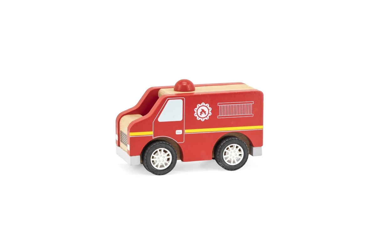 Šis gaisrinės automobilis pagamintas iš aukštos kokybės medžio, kuris užtikrina didelį patvarumą ir saugumą jūsų vaikams.