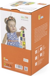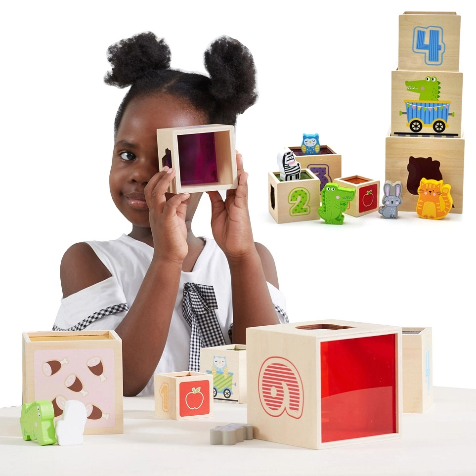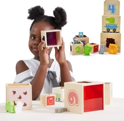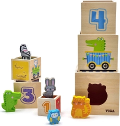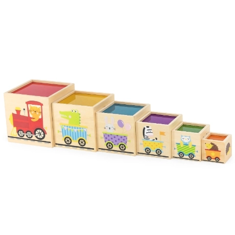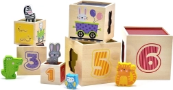 Ši nuostabi rinkinio sudėtis – šešios skirtingo dydžio kaladėlės, kurių kiekviena turi savitų motyvų. Vaikai mokosi atskirti skaičius, formas, spalvas, dydžius ir gyvūnus. Kaladėles galima lengvai sudėti vieną į kitą arba krauti vieną ant kitos, kas padeda suprasti išdėstymo ir eiliškumo sąvokas.