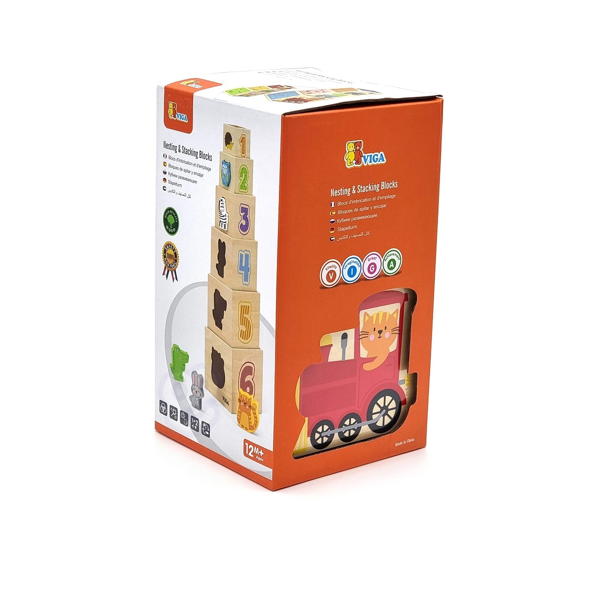 Kiekviena kaladėlė pažymėta skaičiais, formomis ir spalvomis, todėl vaikai mokosi pagrindinių pažintinių įgūdžių.