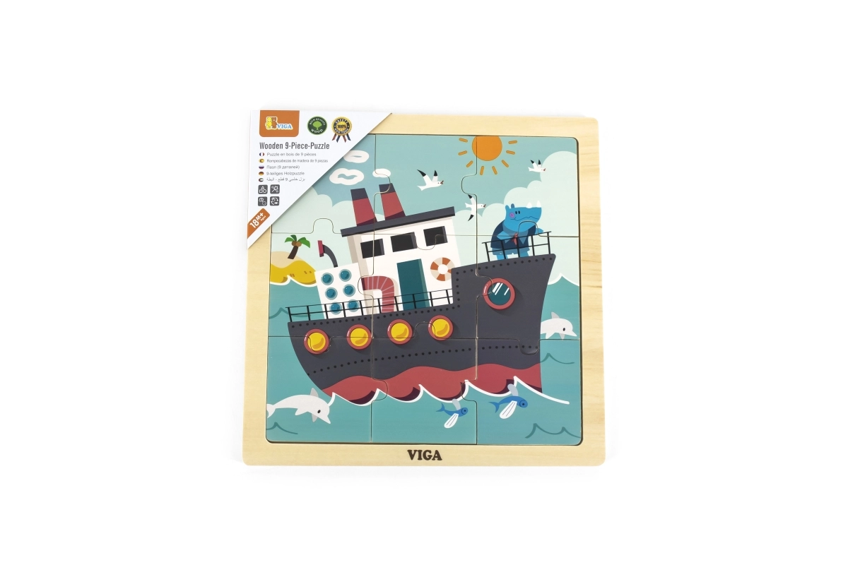 VIGA medinė dėlionė su laivo motyvu siūlo 9 lengvai paimamas detales ant tvirtos medinės lentos – idealiai tinka patiems mažiausiems. Dėl saugių netoksiškų dažų, lygintų kraštų ir patvarios medinės konstrukcijos tai puikus pasirinkimas namams ir darželiui. Vaikai patirs atradimo džiaugsmą ir lavins smulkiąją motoriką, loginį mąstymą bei pažintinius gebėjimus.