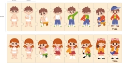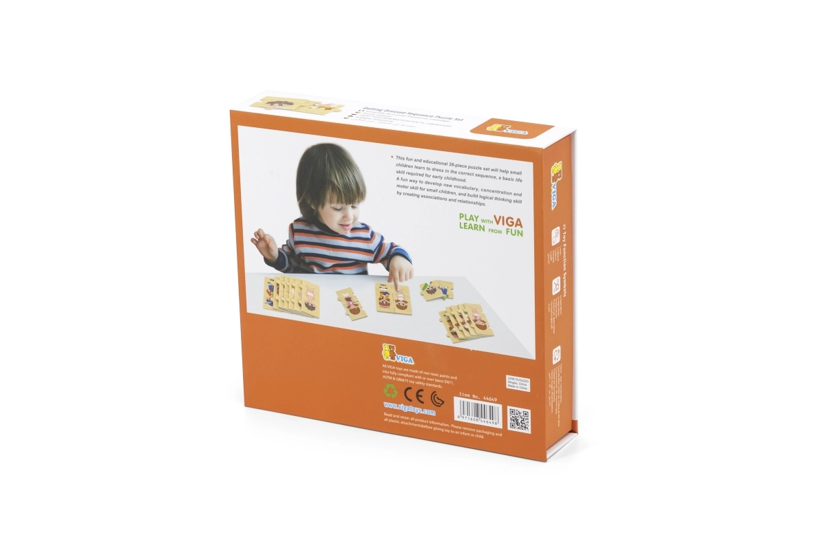 Šis kokybiškas medinis edukacinis žaislas moko vaikus teisingo apsirengimo eiliškumo dėliojant nuoseklias detales su berniuko ir mergaitės atvaizdais. Kiekviena detalė turi unikalų motyvą ir tiksliai susijungia, todėl žaisdami vaikai lavina suvokimą apie ryšius ir kantrybę.