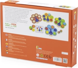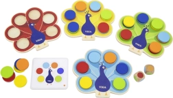 Rinkinyje yra 4× medinė povo lenta, 36 diskai 6 spalvų, 20 dvišalių užduočių ir 2 spalvų kauliukai. Žaidimas tinka tiek individualiai, tiek komandinei veiklai ir puikiai paruošia ikimokykliniam ugdymui.
