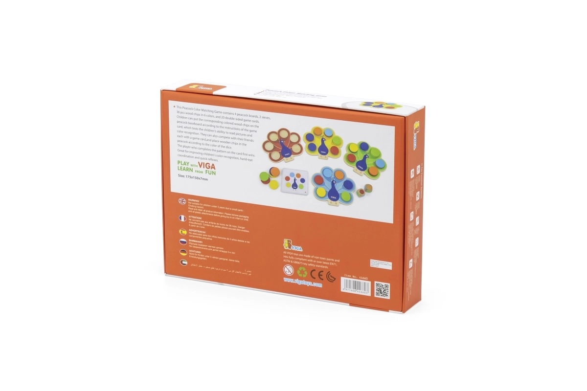 Atraskite sumaniai sukurtą medinį žaidimą, kuriame vaikai komplektuoja spalvingą povo uodegą. Remdamiesi dviem pusėm spausdintomis kortelėmis arba kauliukų metimo rezultatu, jie įstato diskus į tinkamas angas, taip natūraliai lavindami loginį mąstymą, dėmesį ir judesių sinchronizaciją. Saugus bukmedžio korpusas ir netoksiškos spalvos užtikrina rūpesčių nekeliantį žaidimą.