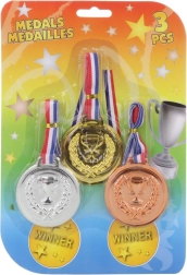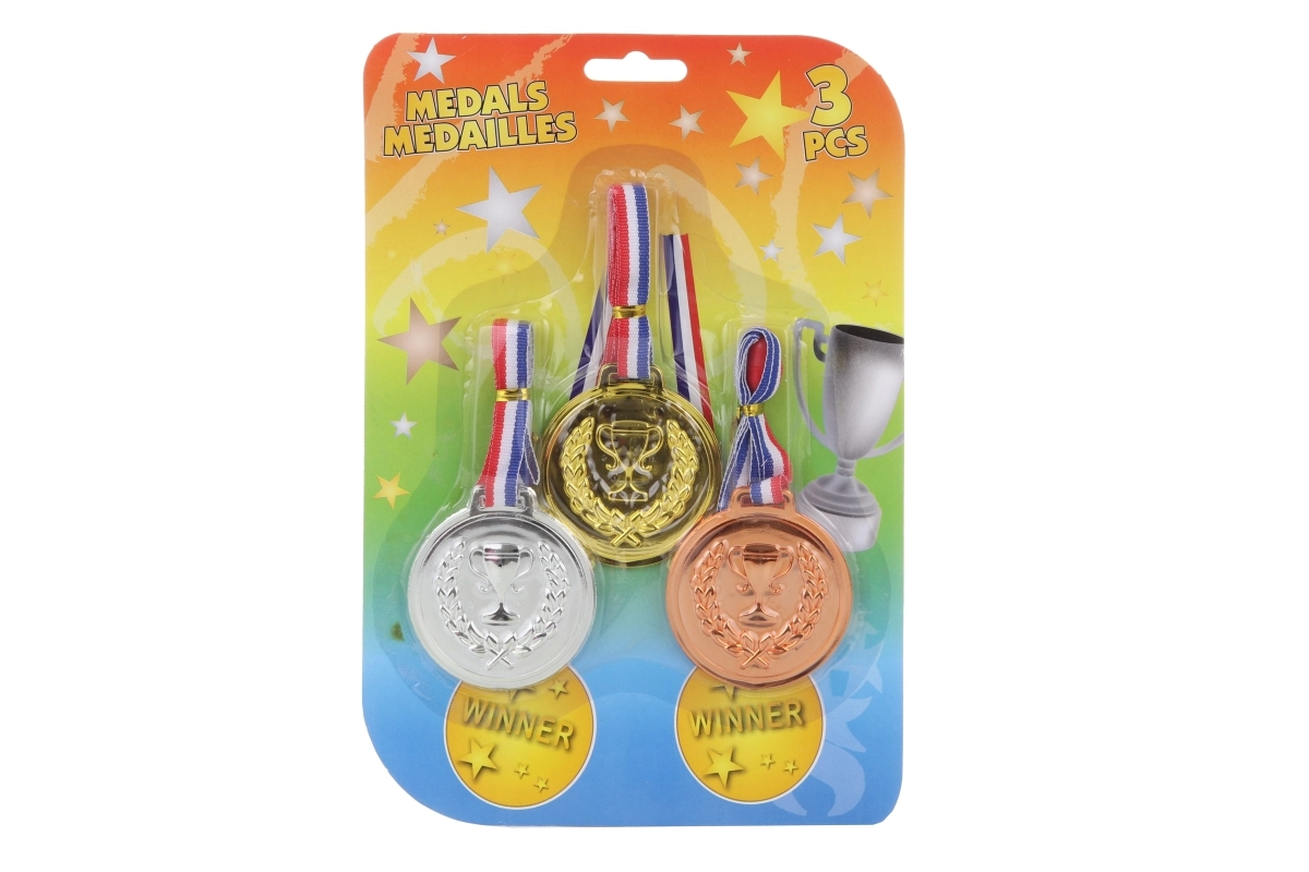 Šis universalus medalių rinkinys puikiai motyvuoja visus mažus sportininkus ir žaidėjus. Kokybiškas apdirbimas ir trys klasikinės spalvos leidžia įvertinti nugalėtojus ir kitas vietas bet kuriose varžybose. Dėl maždaug 6 cm skersmens medaliai yra gerai matomi ir patogūs nešioti.