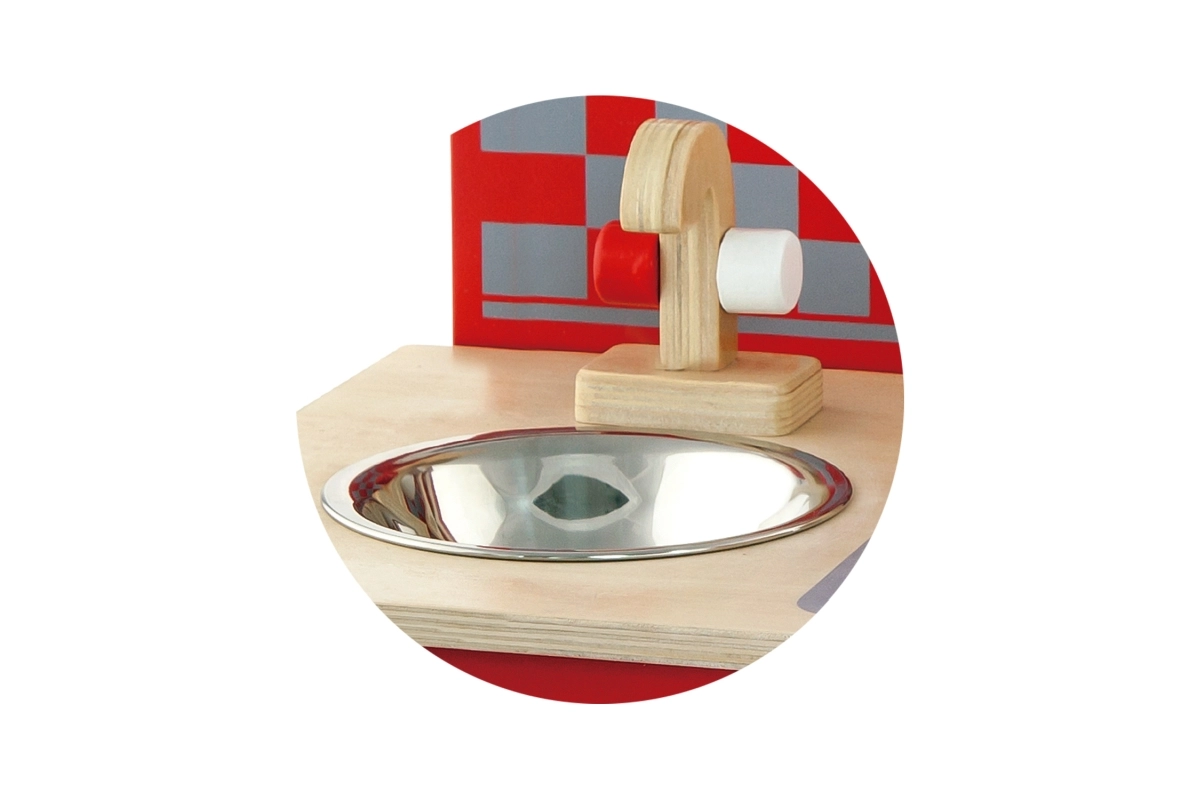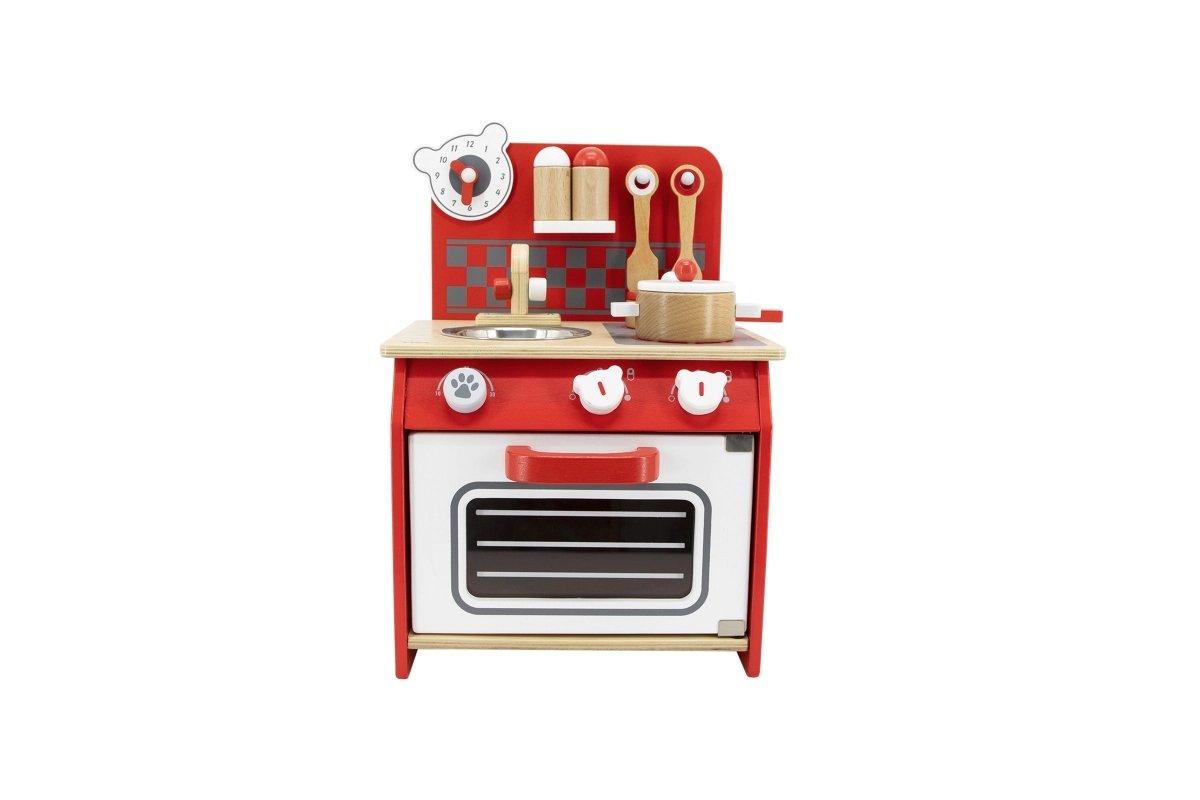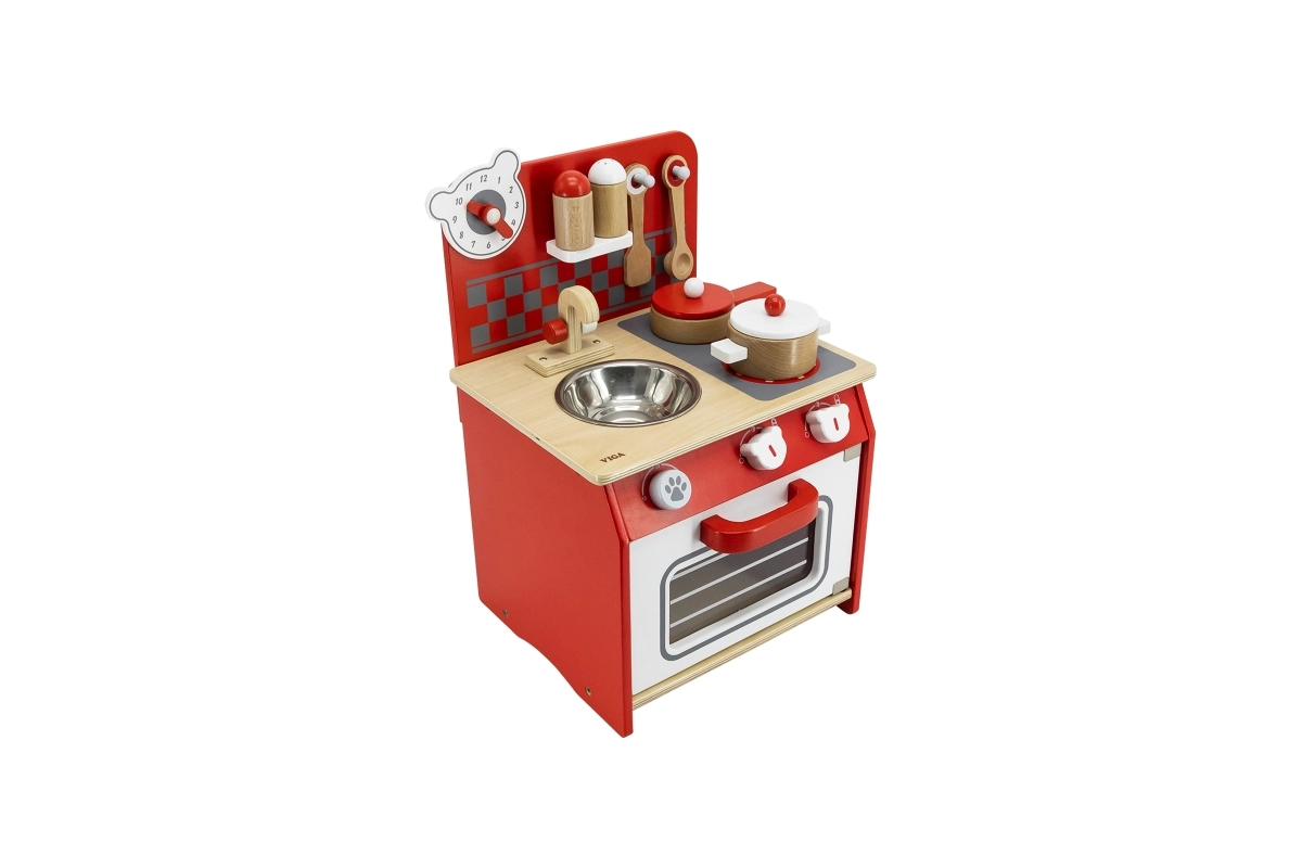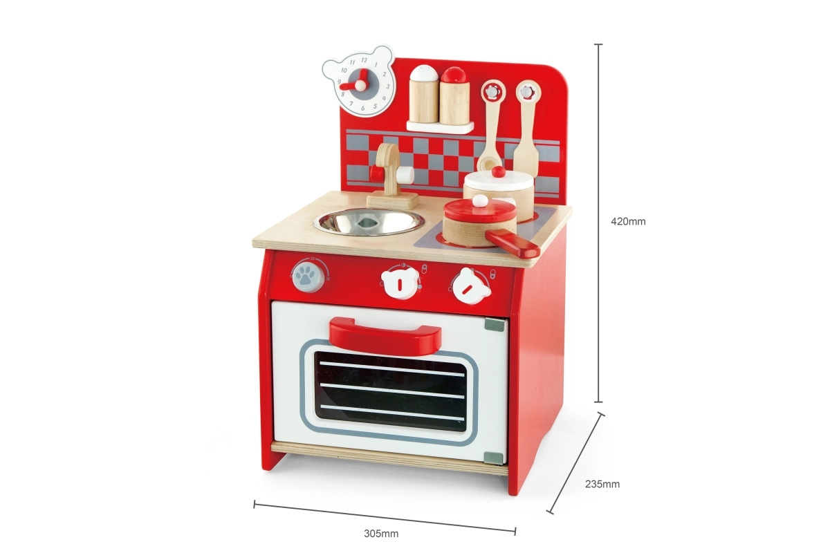 Dizainiška virtuvėlė siūlo realistišką viryklę ir orkaitę tobulam vaidmenų žaidimui ruošiant maistą.