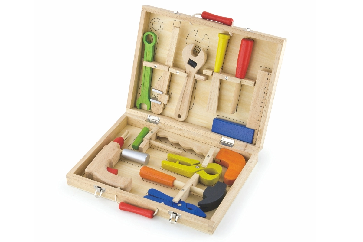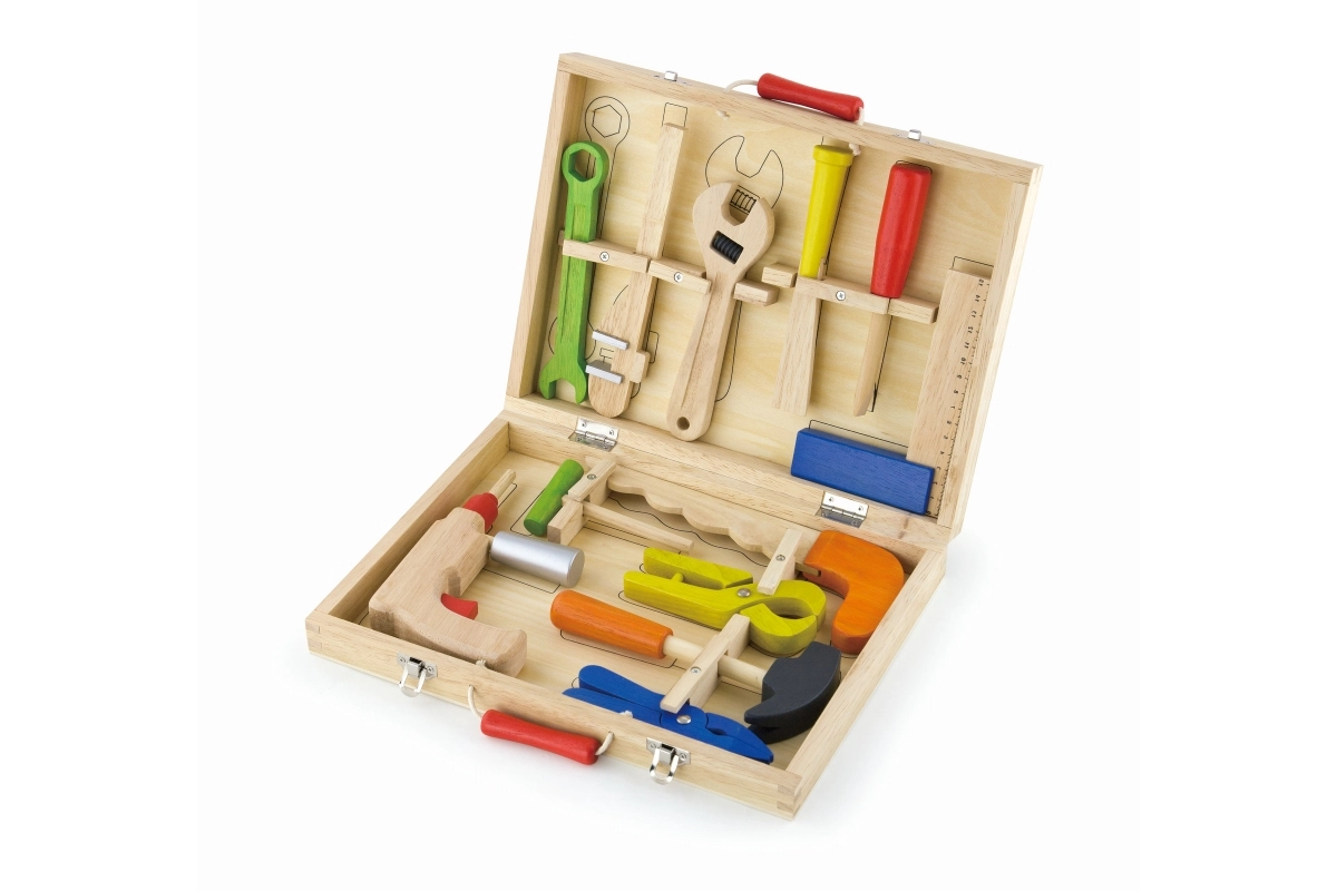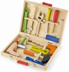 - Vaikiškas medinis įrankių rinkinys lagaminėlyje