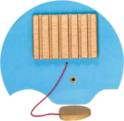 Riaumota juostelė, perbraukta lazdele, skleidžia būdingus garsus. Vaikai treniruoja suėmimą, koordinaciją ir ritminį pojūtį.