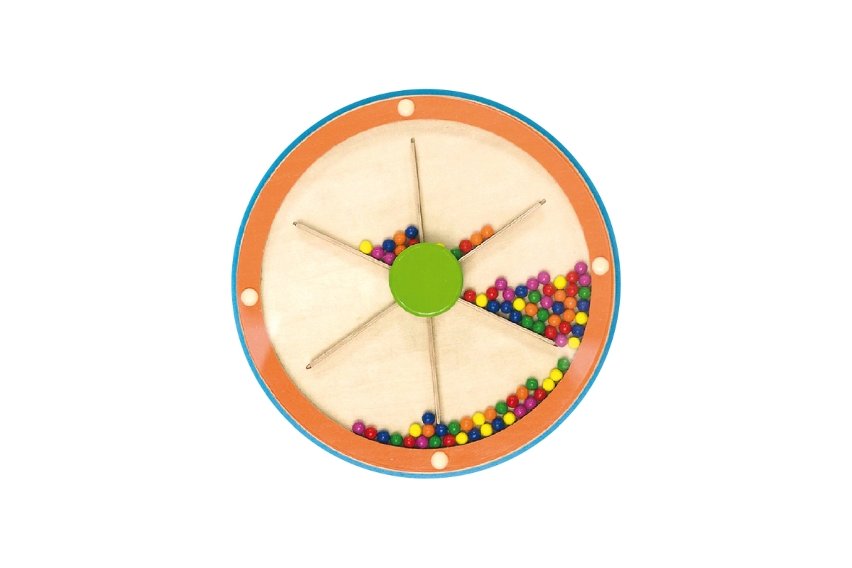 Sukamas ratas su spalvotais kamuoliukais stimuliuoja regą ir klausą, skatina susikaupimą ir motyvuoja tolimesniam interaktyviam žaidimui.