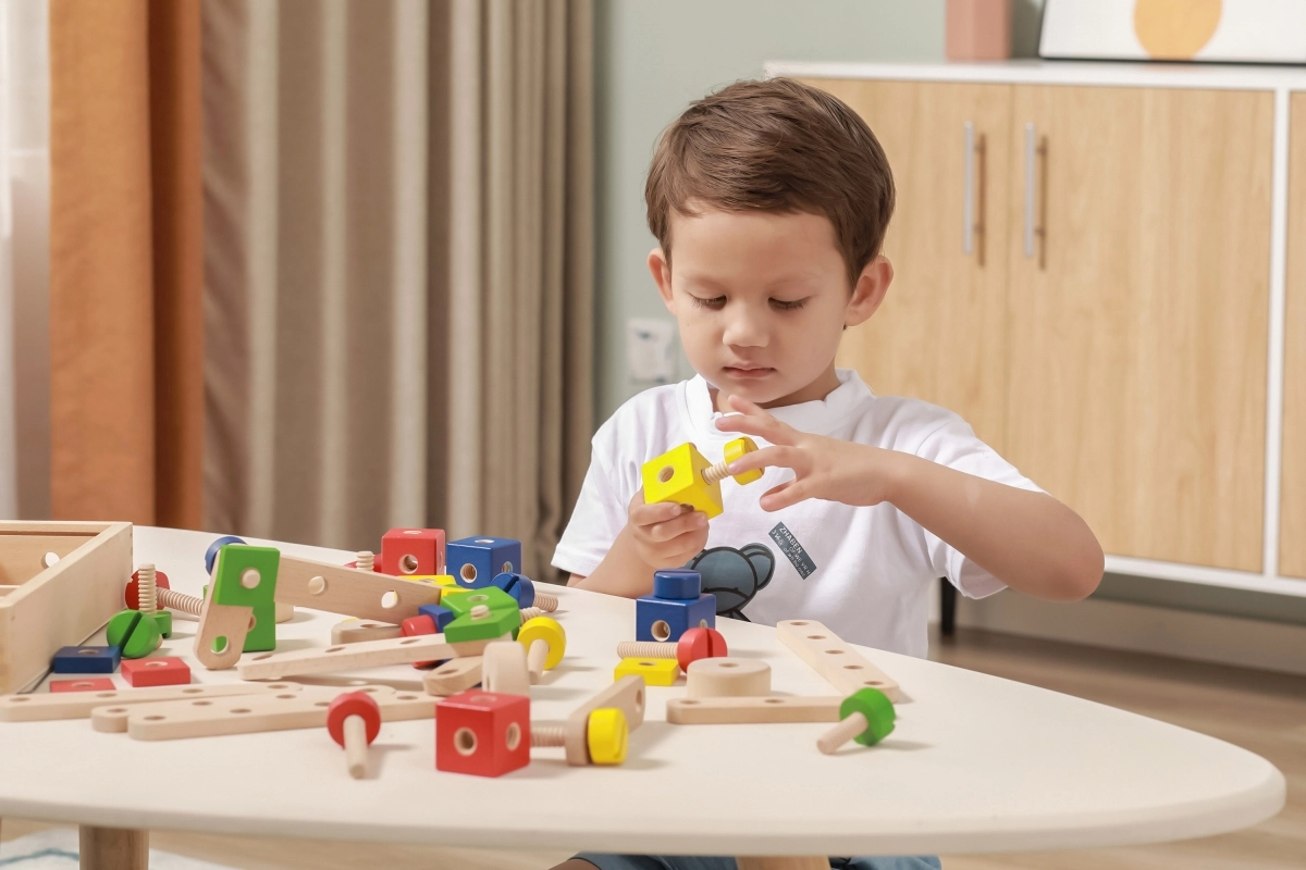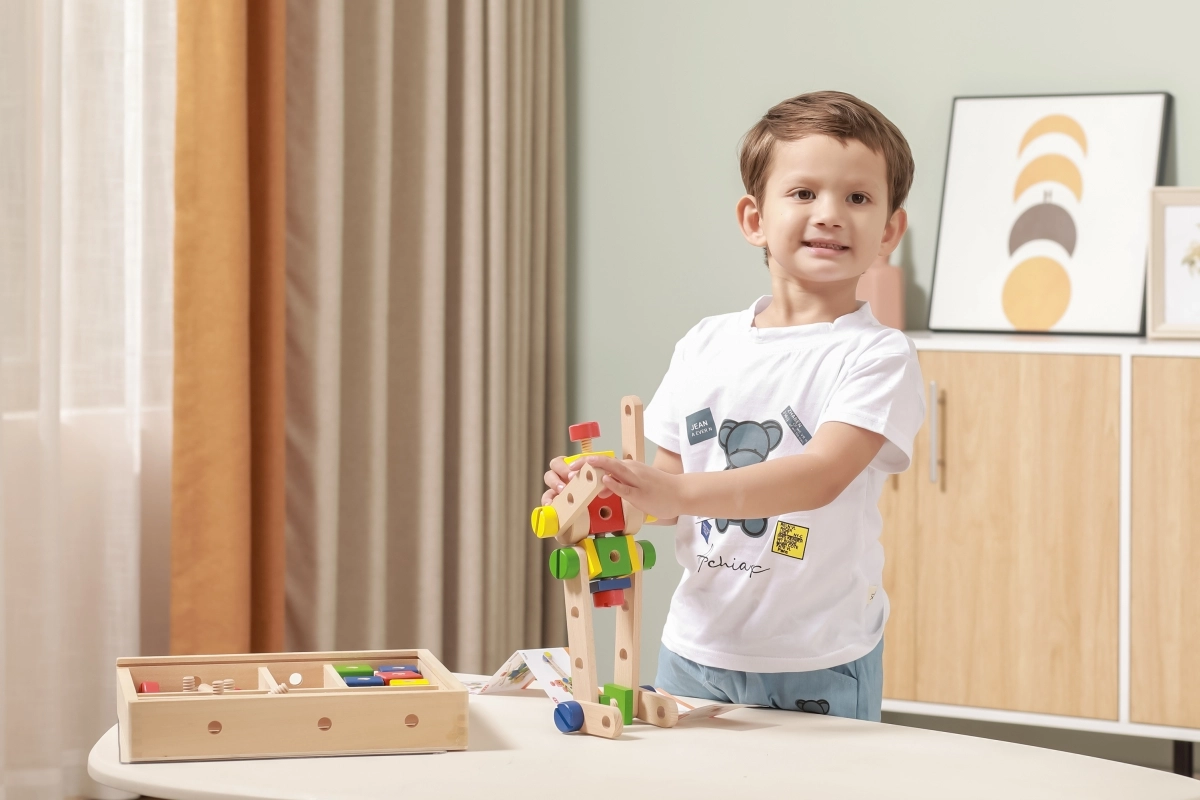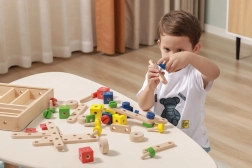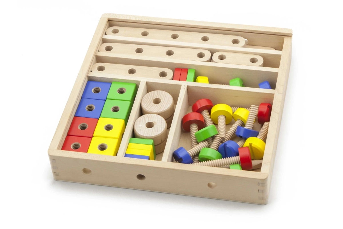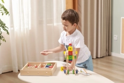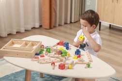 Rinkinys lavina smulkiąją motoriką, akių–rankų koordinaciją, loginį ir erdvinį mąstymą. Natūrali mediena kartu su ryškiomis spalvomis vilioja žaisti ir mokytis per pramogą. Viskas tvarkingai laikoma dėkle su permatomu dangteliu, kad detales būtų lengva susitvarkyti ir jos visada būtų po ranka.
