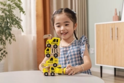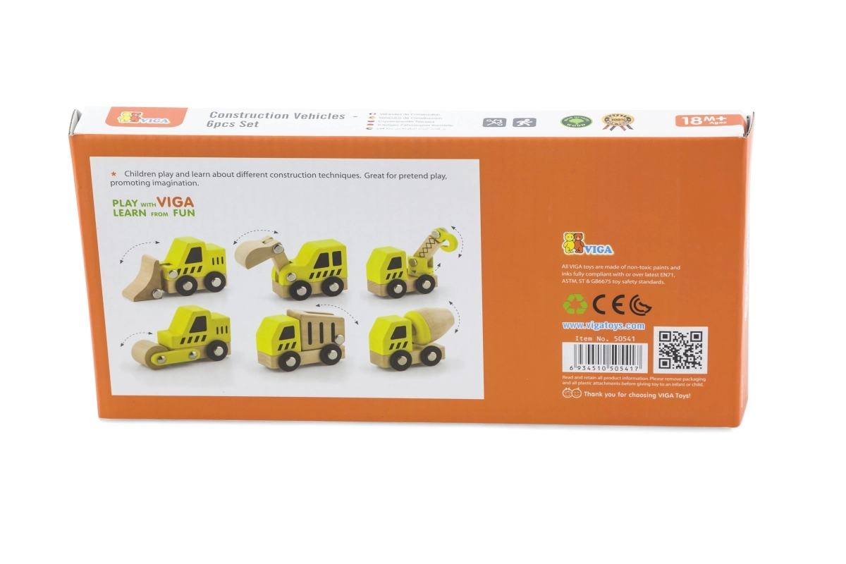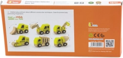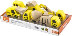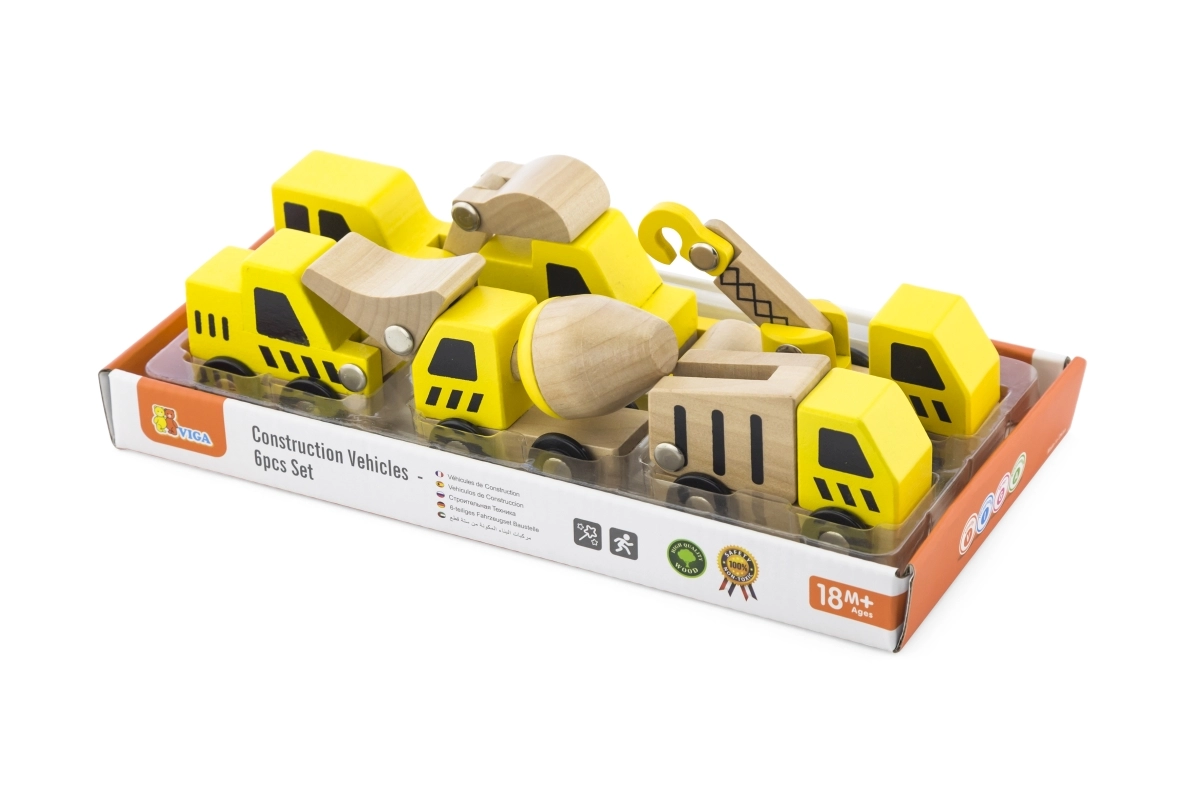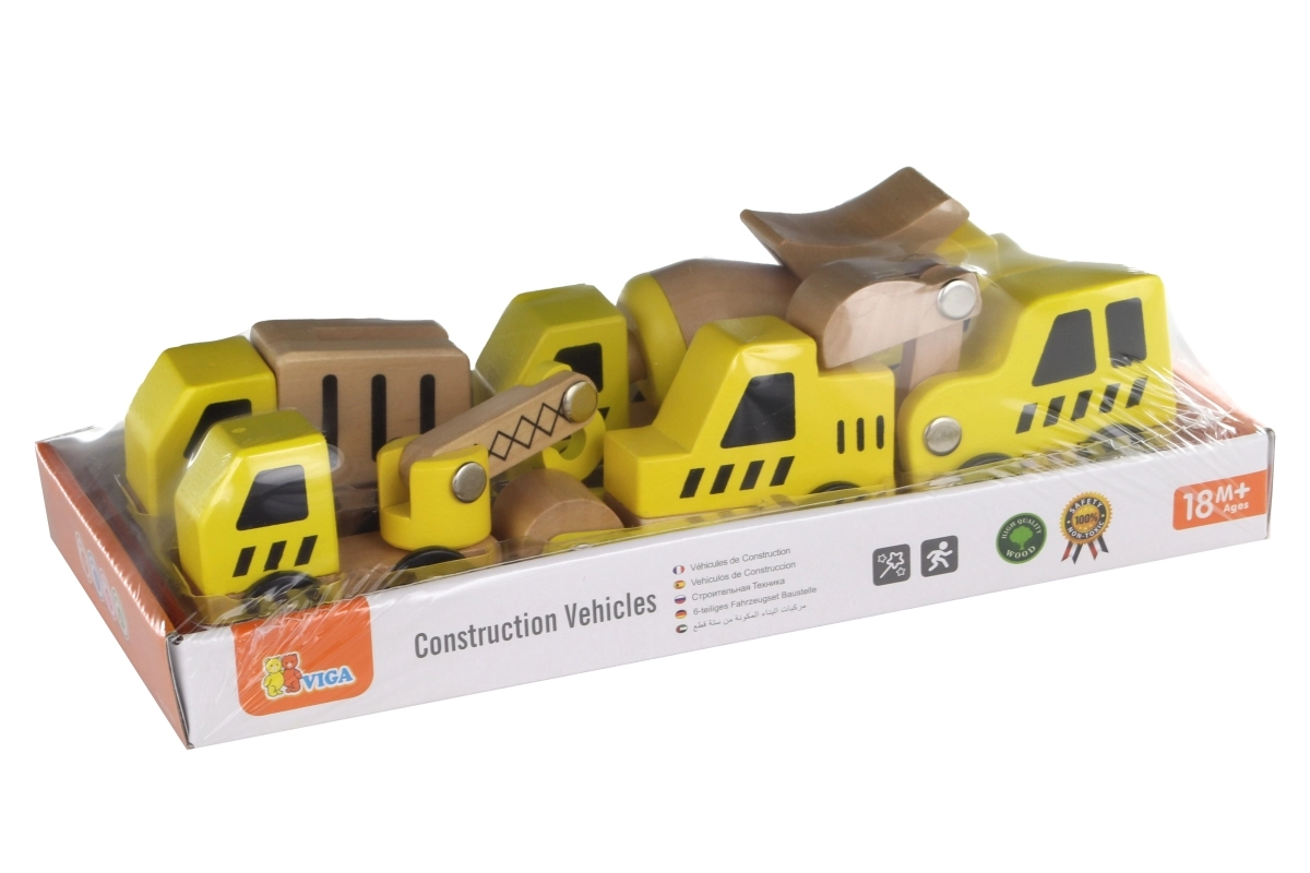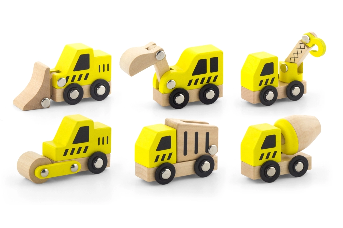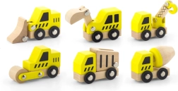 Ši kokybiška rinktinė apima 6 skirtingas statybines transporto priemones ryškiai geltonos spalvos su natūralaus medžio detalėmis – idealiai tinka pirmiesiems „lenktynių“ važiavimams grindimis ir statybvietės vaidmenų žaidimams. Dėl apvalintų formų ir patvarios medinės konstrukcijos automobiliai yra saugūs ir malonūs liesti.