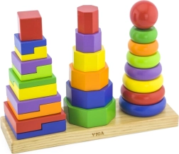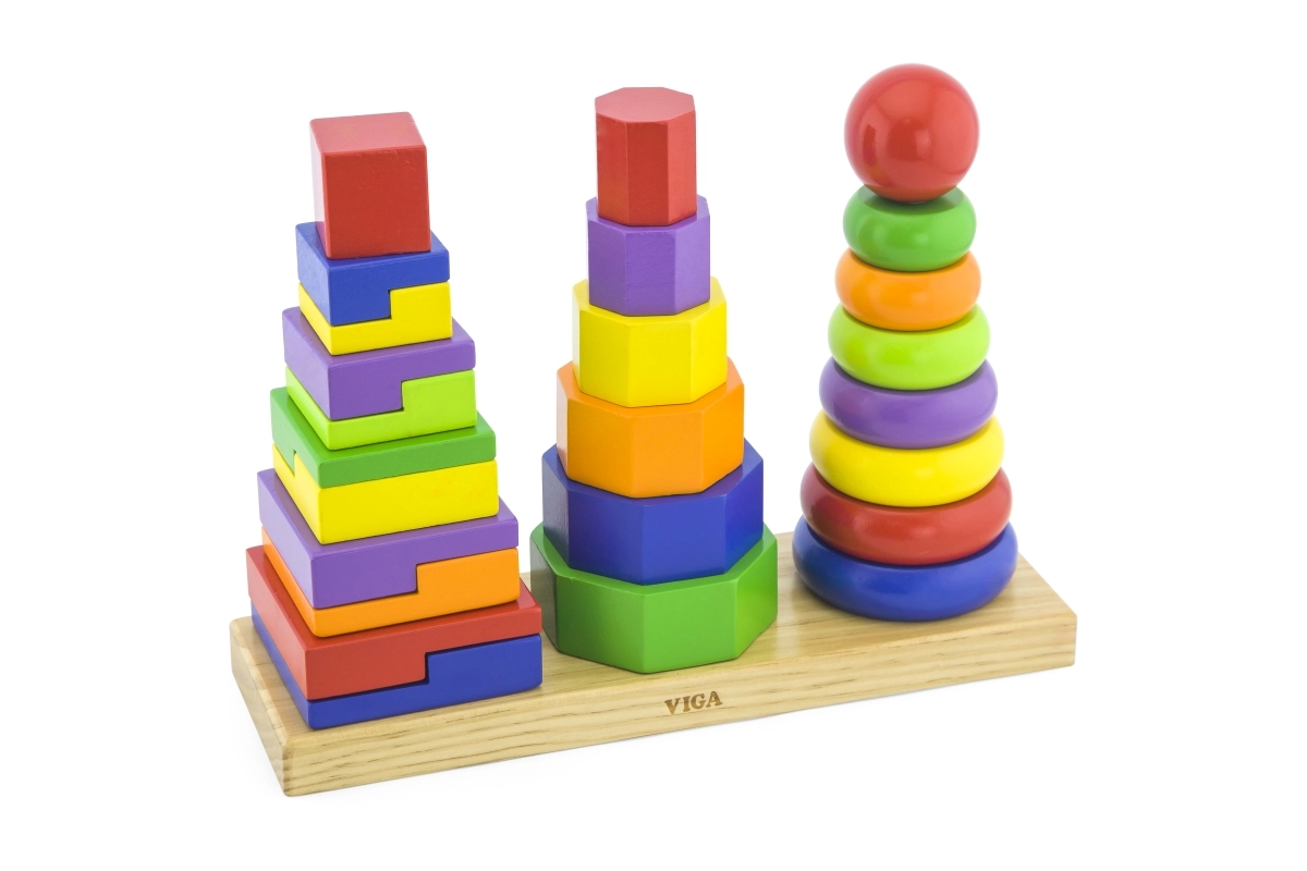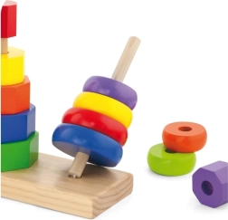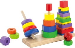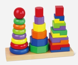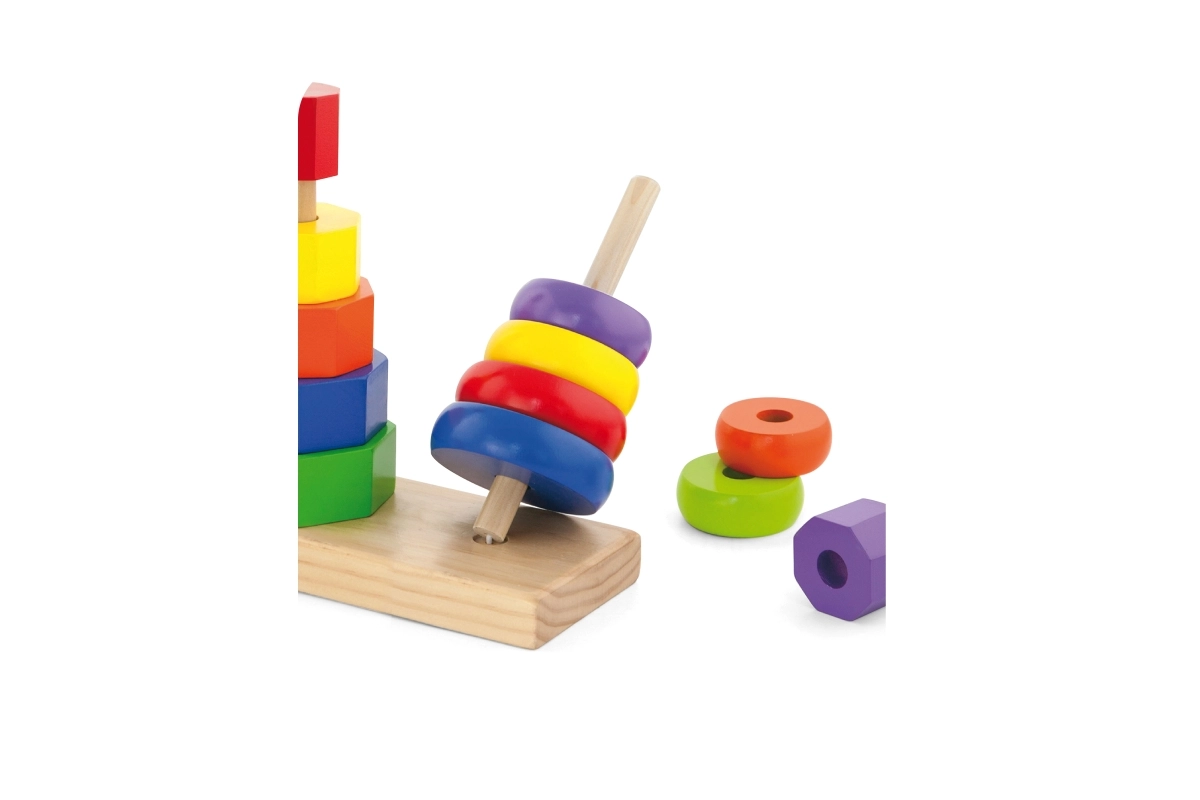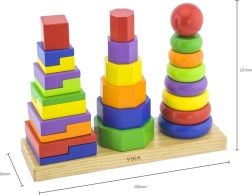 Medinė dėlionė piramidė suteikia ir pramogą, ir mokymąsi patiems mažiausiems. Sukurta taip, kad padėtų vaiko raidai per: