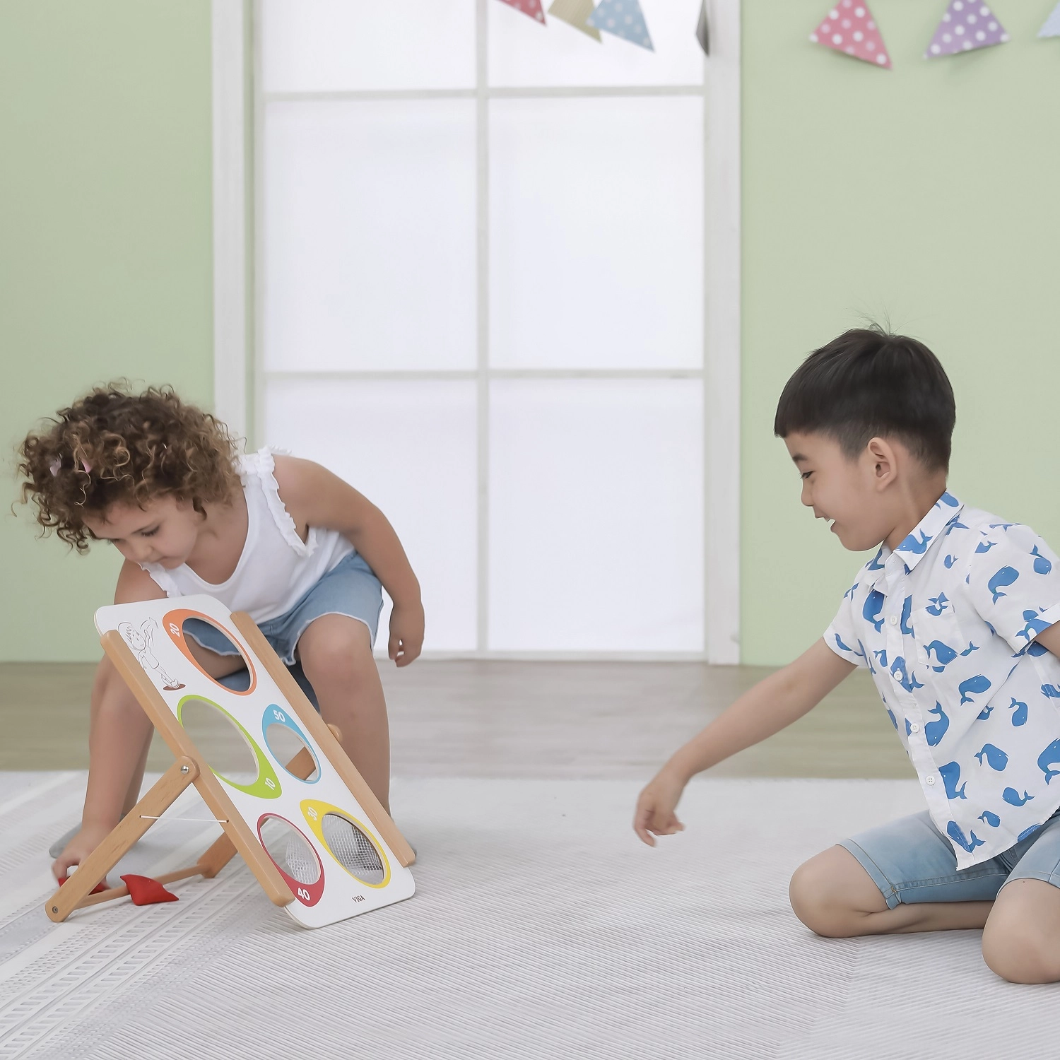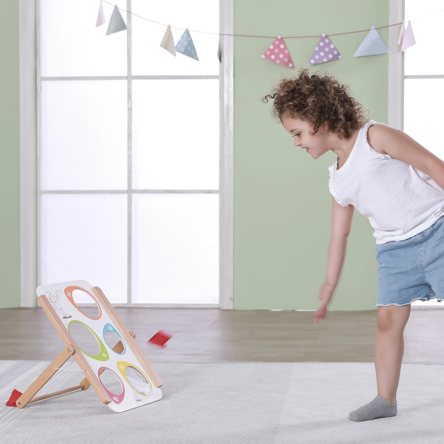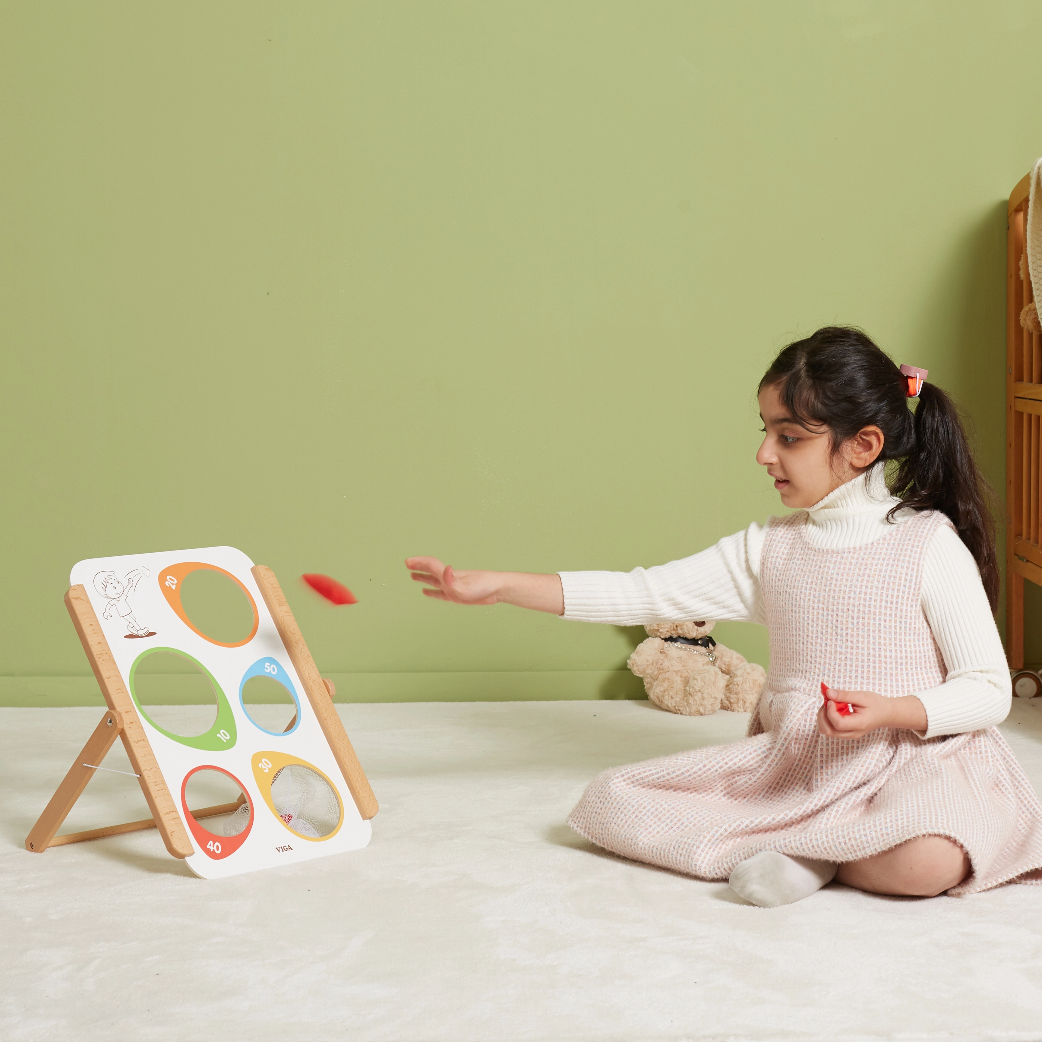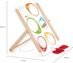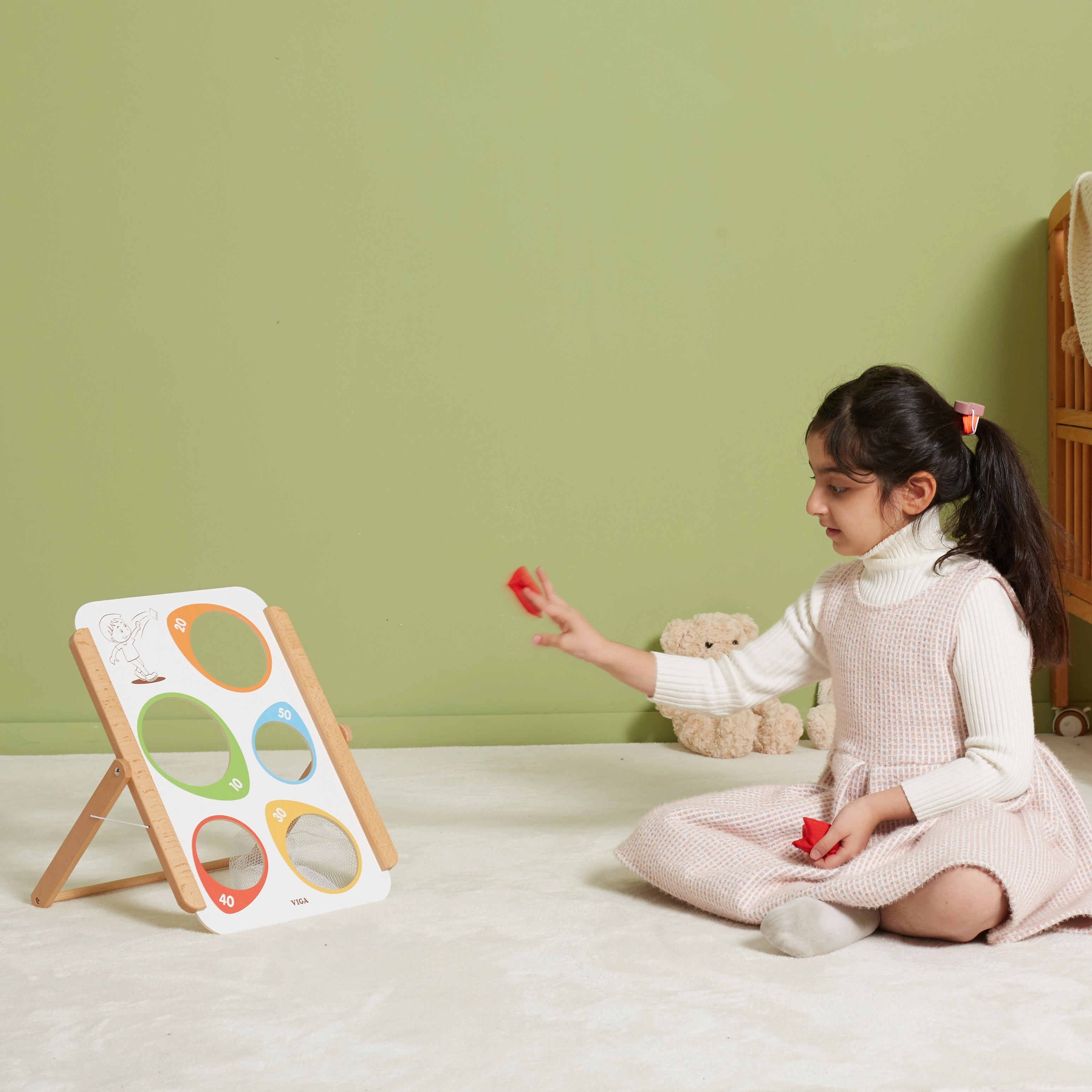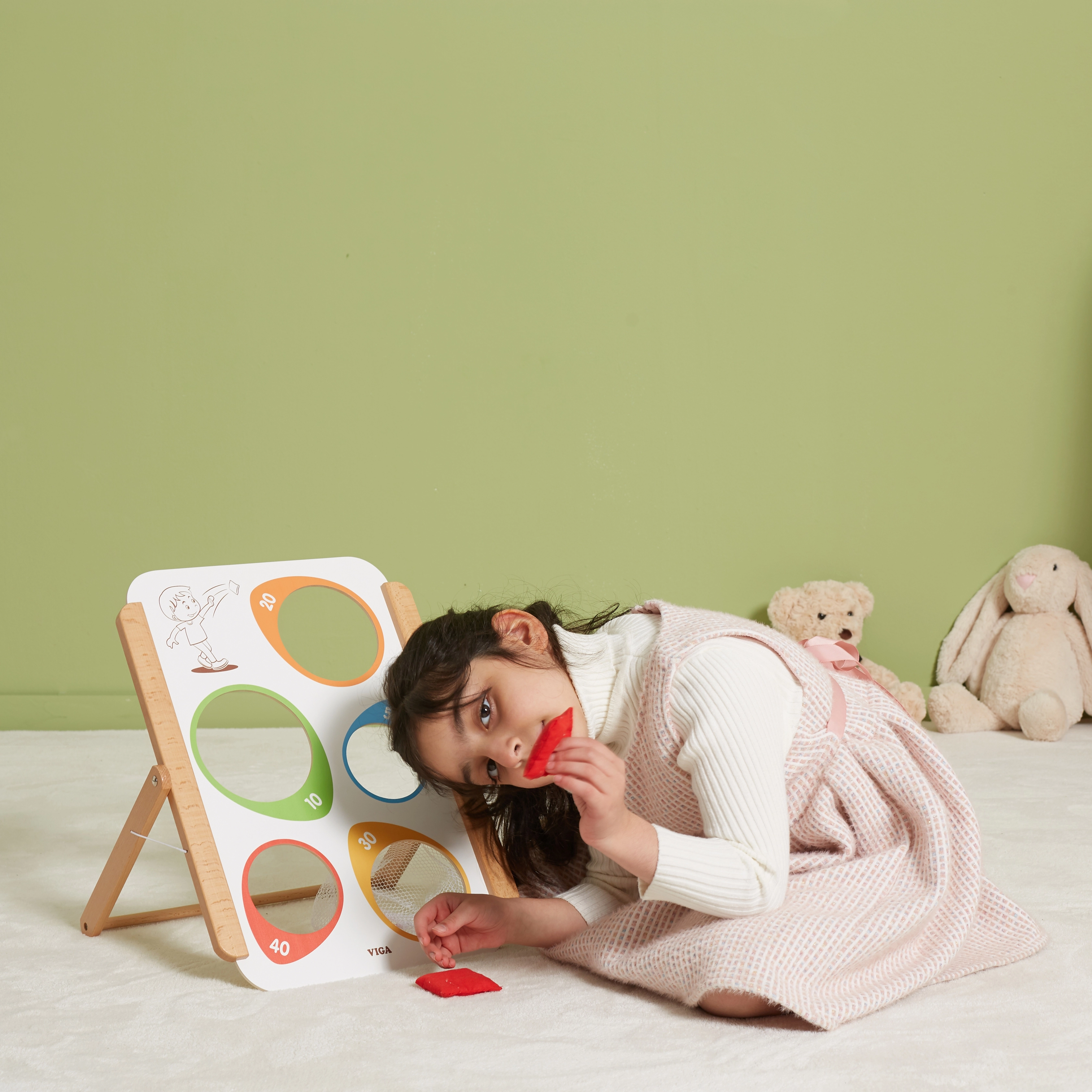 Viga medinis taikinio mėtymo žaidimas suteikia ir pramogą, ir ugdomąją naudą. Jis idealiai tinka tiek namuose, tiek lauko veikloms. Visa žaidimo įranga pagaminta iš lakuotos medienos ir dažyta netoksiškais dažais, todėl užtikrina ilgalaikį saugų naudojimą be sveikatos rizikos. Puikiai lavina vaikų gebėjimus ir skatina smulkiosios motorikos koordinaciją bei susikaupimą.