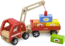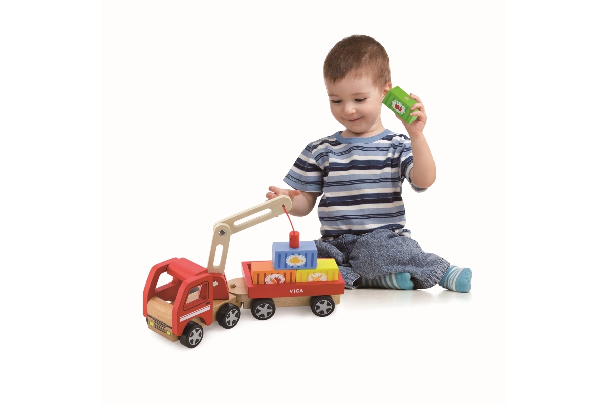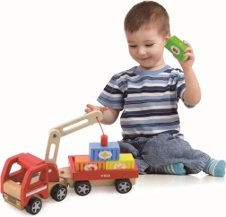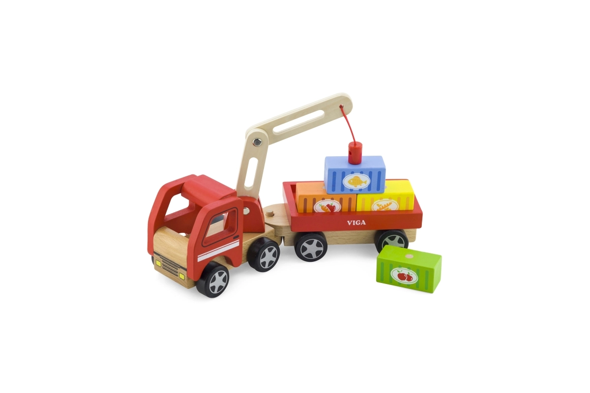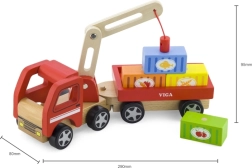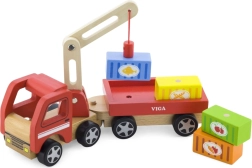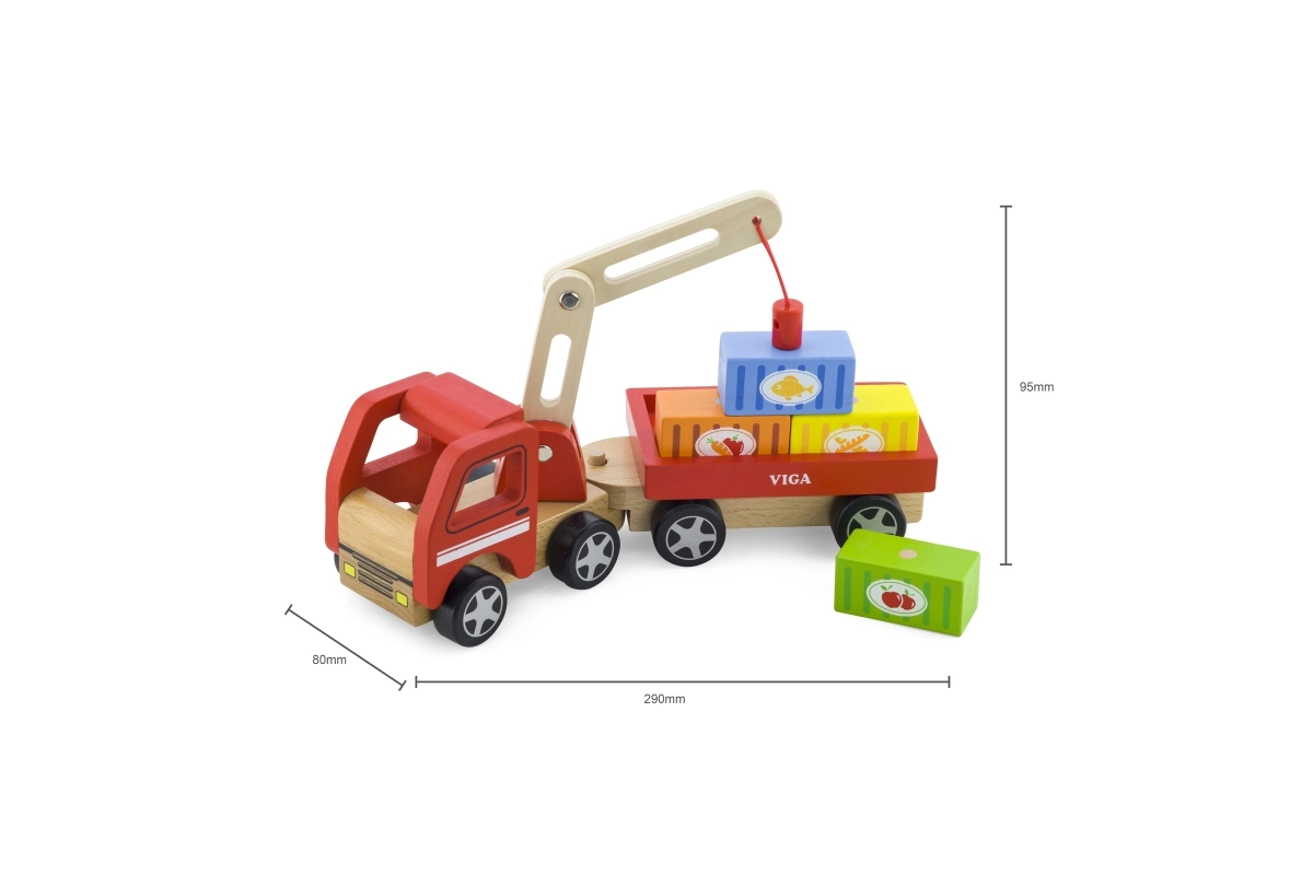 Medinis VIGA kranas su konteineriais puikiai tinka tiek darželiui, tiek namams. Jo judanti strėlė ir magnetiniai konteineriai ne tik suteikia daug pramogų, bet ir lavina vaikų smulkiąją motoriką.