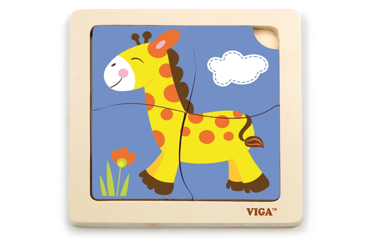 Praturtinkite vaikų žaidimus išradinga Viga medine dėlione, kuri įtraukia į fantazijos ir pažinimo pasaulį. Naudodami keturis gardžiai spalvingus žirafos detales vaikai mokosi lavinti: