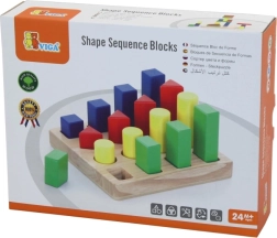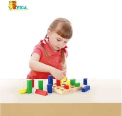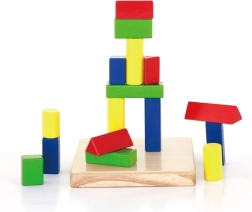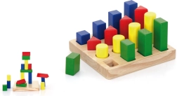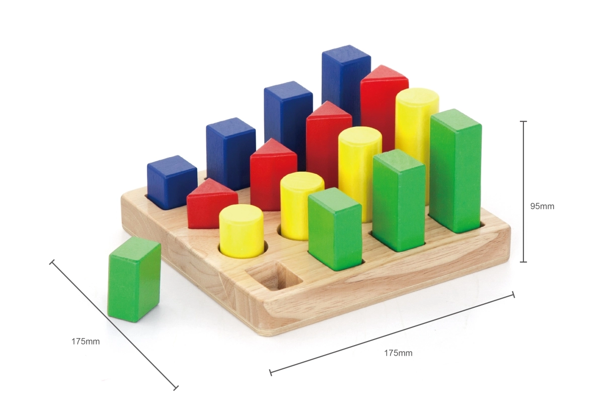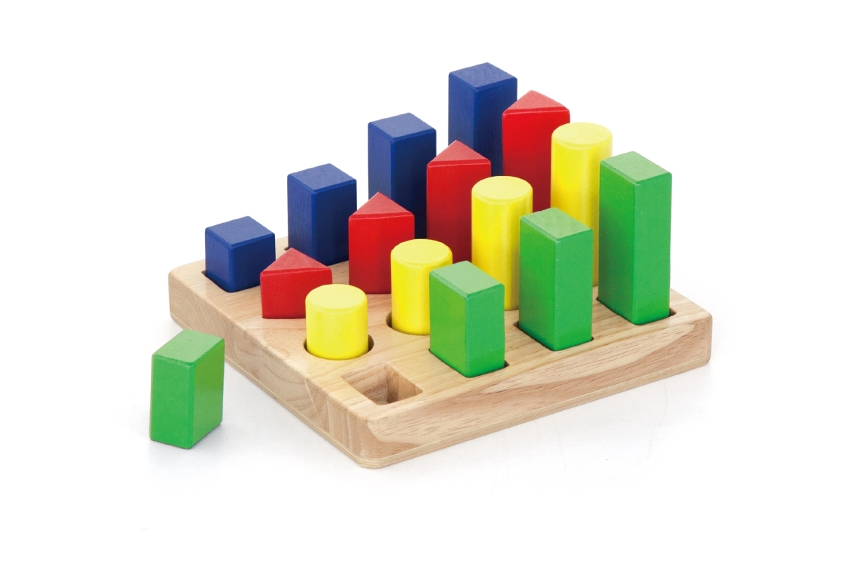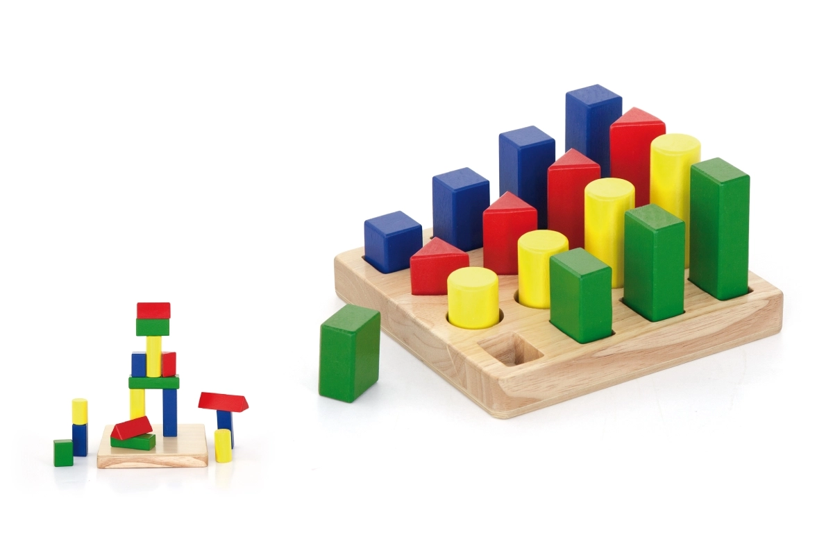 - medinė bazė su kaišteliais ir spalvotų geometrinių detalių rinkinys
