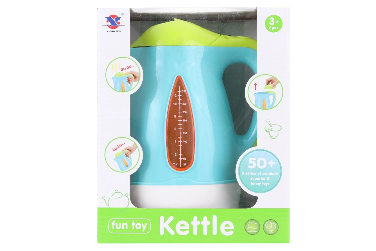 Linksmas vaikiškas baterijomis veikiantis virdulys suteikia realistišką buities žaidimą – šviečia, leidžia garsus ir jį galima pripildyti vandeniu. Idealu mažiesiems virėjams nuo 3 metų. Maitinimas: 3× AA baterijos (nepridedama).