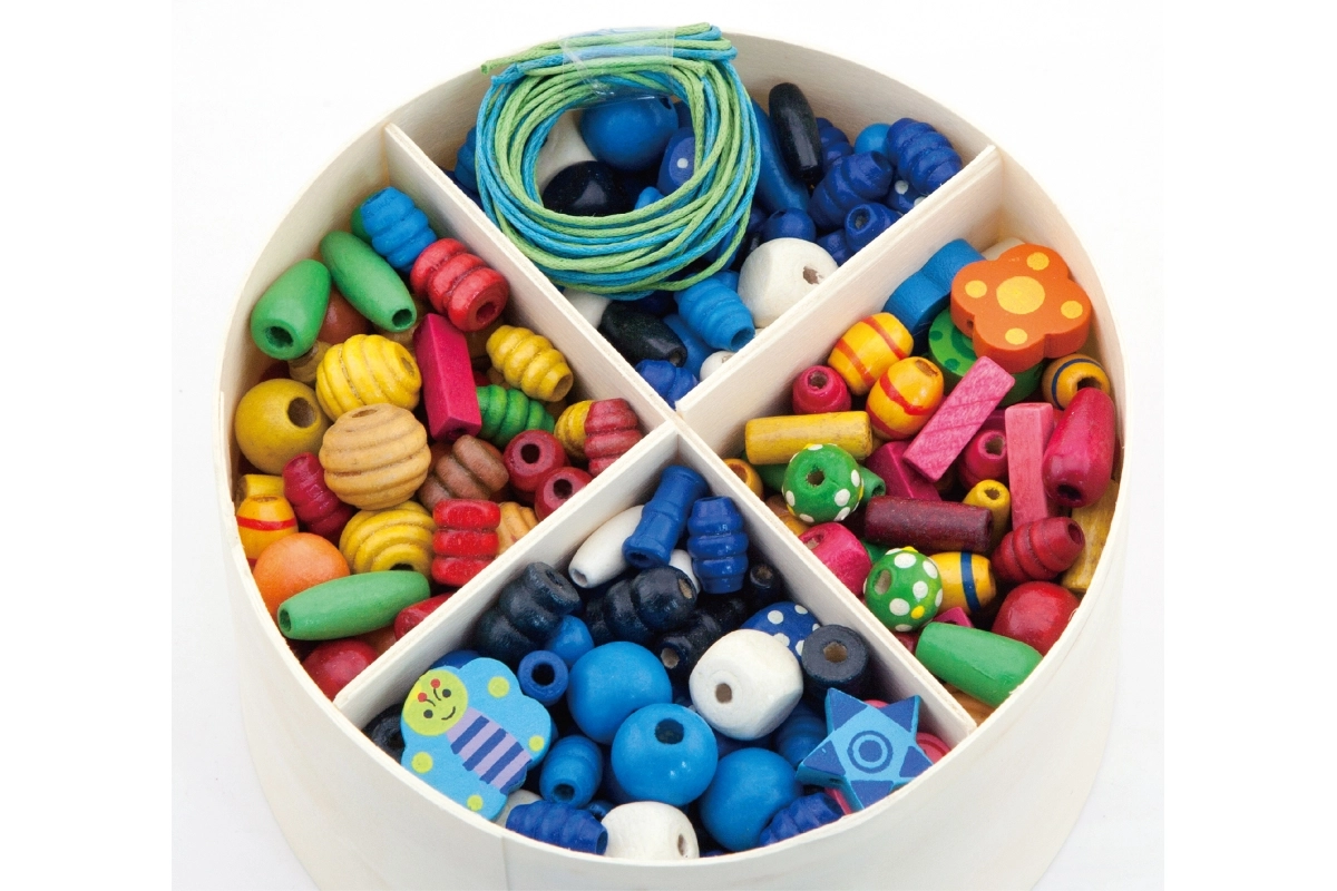 Dėl įvairių karoliukų formų ir spalvų vaikai gali kurti asmeninius papuošalus.