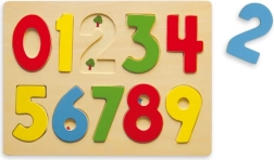 Ši medinė skaitmenų dėlionė siūlo dešimt atskirų spalvingų detalių su skaičiais 0–9, kurios įdedamos į atitinkamas išpjovas. Vaikai natūraliai įsisavina skaičių atpažinimą ir lavina kantrybę bei susikaupimą.
