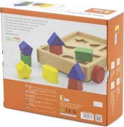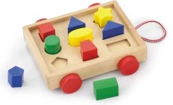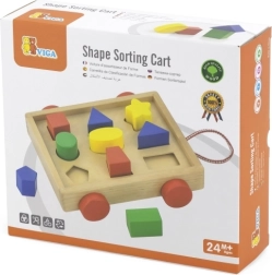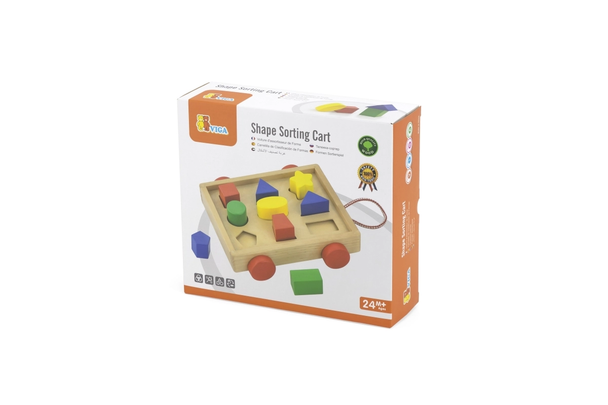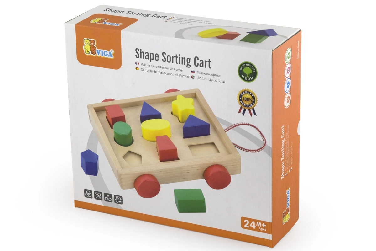 Medinė rūšiuoklė – vežimėlis siūlo vaikams linksmą ir edukacinį kelią į smulkiosios motorikos gerinimą. Rinkinyje yra vežimėlis, kurio matmenys 24,5 x 22 x 7 cm, ir 9 skirtingų spalvų kaladėlės įvairių formų, kurias reikia teisingai įstatyti. Šis vežimėlis motyvuoja vaikus žaisti, kartu mokantis formų atpažinimo.
