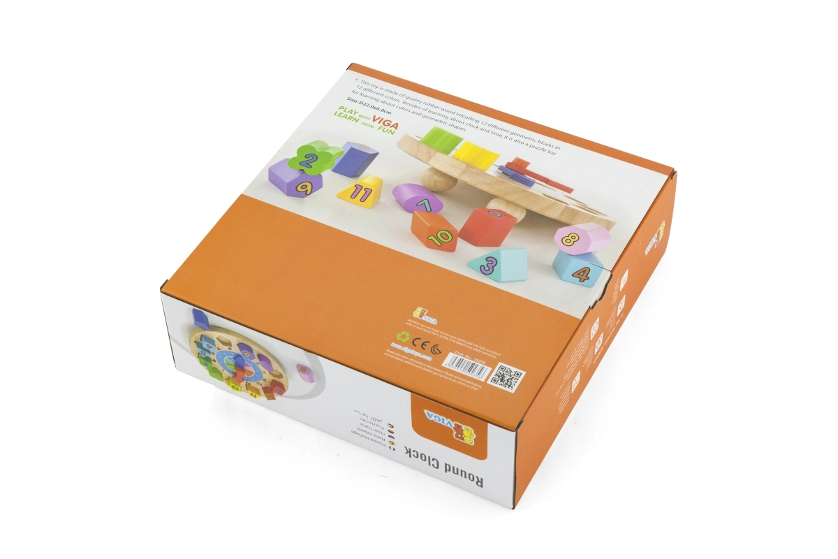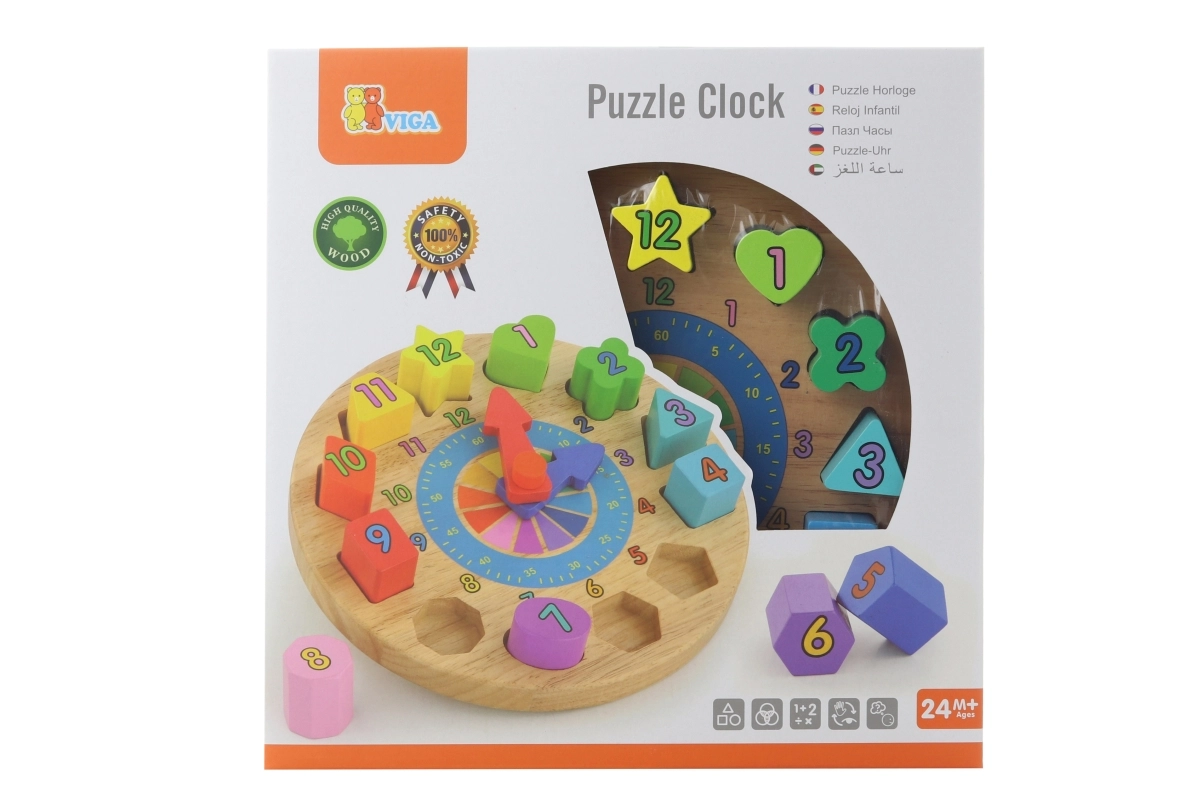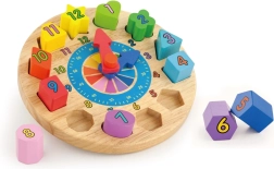 Smagus ir edukacinis medinis laikrodis mažiausiems padeda mokytis pažinti laiką, spalvas ir formas. Jame yra 12 spalvotų įdedamų kaladėlių su skaičiais, kurios lavina smulkiąją motoriką, logiką ir akių–rankų koordinaciją. Idealiai tinka vaikams nuo 24 mėnesių.