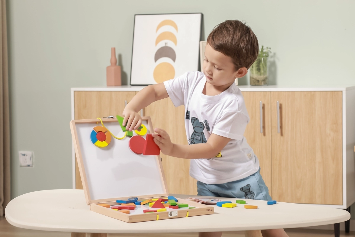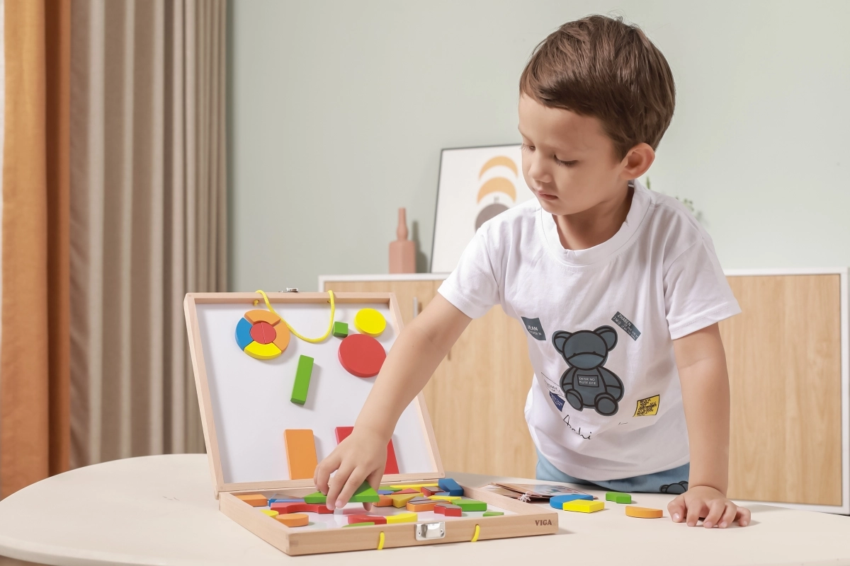 Šis universalus magnetinis konstruktorius suteikia vaikams begalę galimybių dėlioti formas, paveikslėlius ir paprastas mozaikas. Abi vidinės lagamino pusės veikia kaip magnetinė lenta, todėl detalės tvirtai laikosi vietoje, o kūrimas yra patogus ir aiškus. Dėl kompaktiškų matmenų idealiai tinka kelionėms, automobiliui ar svečiuose.