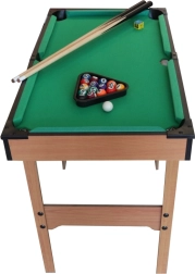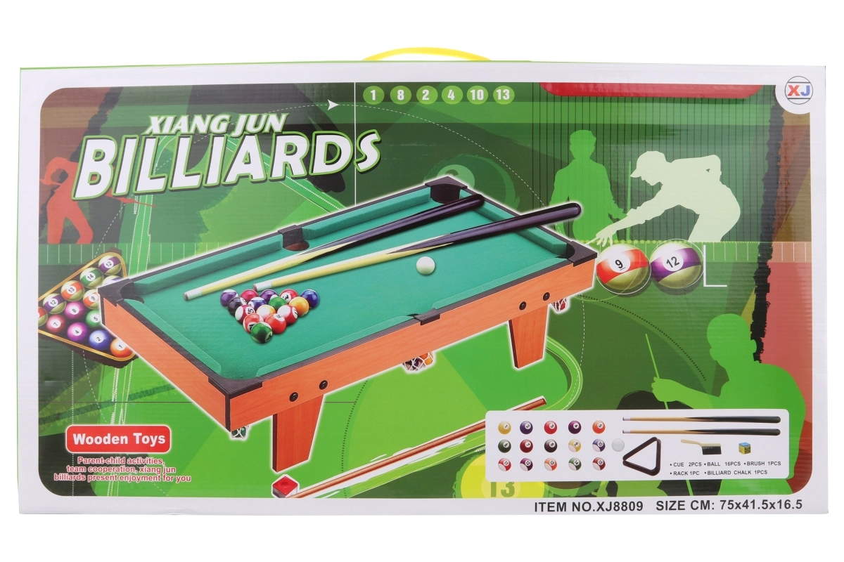 Kompaktiškas vaikiškas biliardas iš kokybiškos medienos suteiks puikų pramogą mažiems ir dideliems žaidėjams. Rinkinyje yra 2 lazdos, 16 biliardo kamuoliukų ir pilni priedai. Dėl matmenų idealiai tinka vaikų kambariui ir pirmajam susipažinimui su žaidimo taisyklėmis.