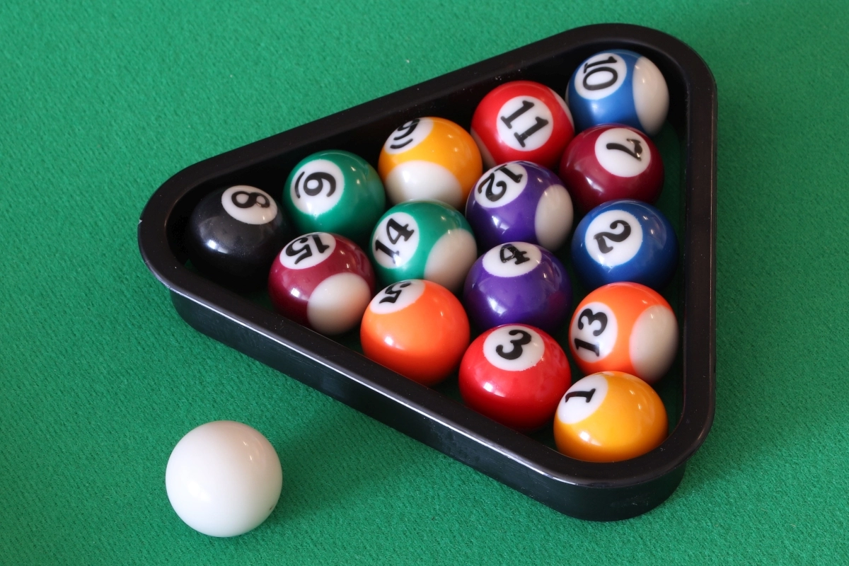 2 lazdos, 16 biliardo kamuoliukų, papildomi priedai