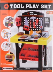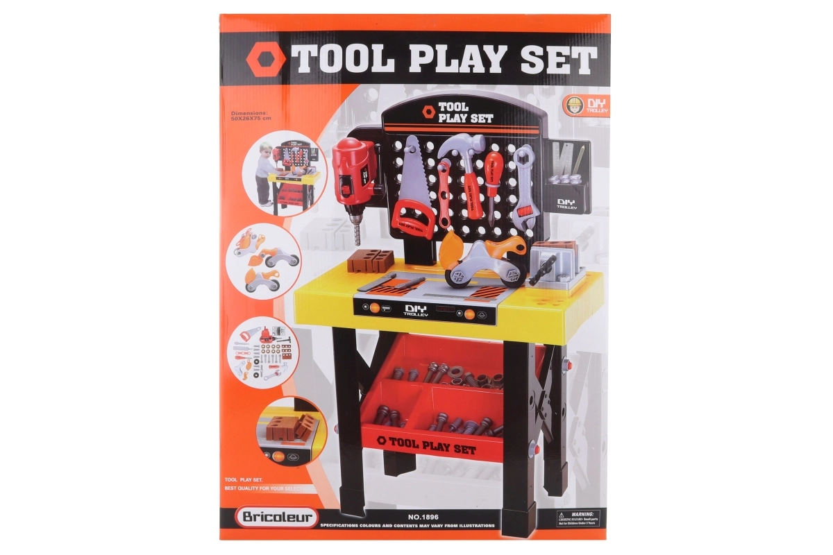 Didelis plastikinis staliukas mažiesiems meistrams siūlo gausią komplektaciją ir realistiškas funkcijas. Į komplektą įeina stalinė gręžimo mašina, spaustuvas, oblius, pjūklas, plaktukas, raktai ir kita priedų įranga. Idealu smulkiajai motorikai lavinti, kūrybiniam žaidimui ir saugiems pirmiesiems susipažinimams su įrankiais.