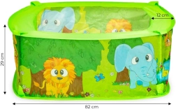 Šis linksmas vaikiškas maniežas su kamuoliukais – idealus žaidimų kampelis patiems mažiausiems. Dėl spalvingo dizaino ir žaismingų motyvų skatinamas smulkiosios motorikos, akių–rankų koordinacijos ir jutiminio suvokimo lavinimas. Rinkinyje yra 50 plastikinių kamuoliukų, kurie skatina aktyvų žaidimą ir spalvų rūšiavimą.