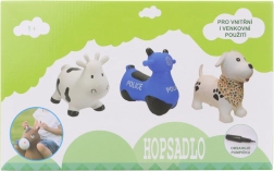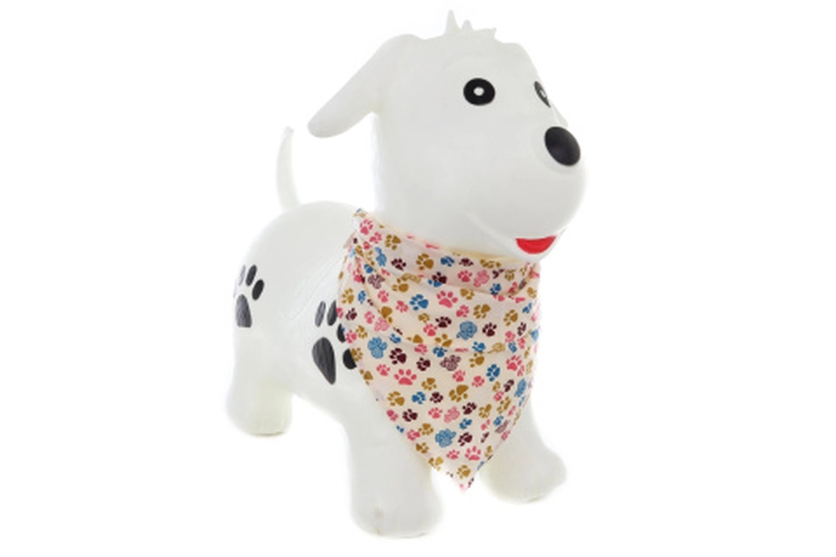 Mielas guminis šokinukas šuniuko formos suteikia vaikams daug pramogų ir judėjimo. Dėl stabilios konstrukcijos, maksimali 50 kg apkrova ir patogi 27 cm sėdynės aukštis – tai idealus pasirinkimas pirmajam šokinėjimo nuotykiui. Komplekte yra praktinė pompikė greitam pripūtimui.