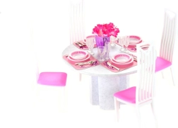 Sukurkite lėlėms tobulai padengtą stalą. Glorie valgomojo rinkinys suteikia viską, ko vaikams reikia šeimos vakarienei ar šventinei puotai surengti – nuo stalo serviruotės iki patogaus sėdėjimo. Kokybiškas plastikas užtikrina lengvą priežiūrą ir ilgaamžiškumą.