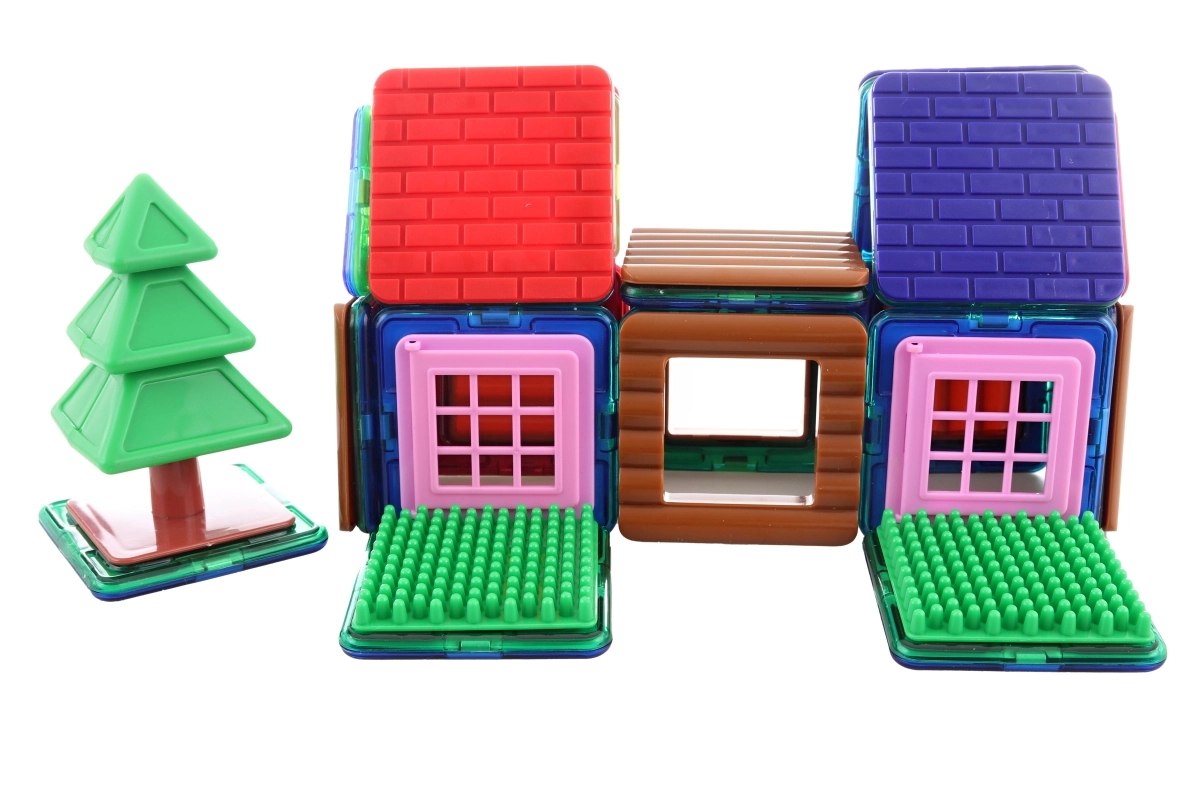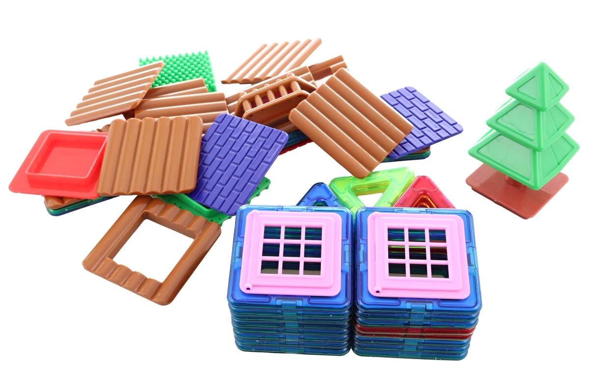 48 spalvotos magnetinės detalės leidžia vaikams statyti namelius, bokštus ir originalius modelius bei lavinti vaizduotę kiekvieno žaidimo metu.