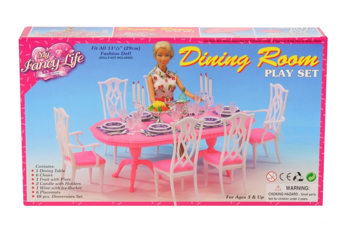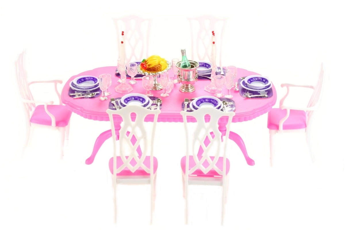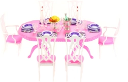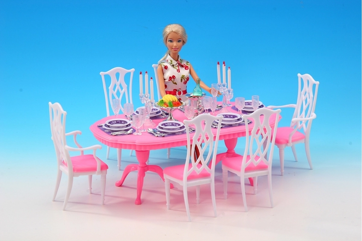 Glorie valgomojo rinkinys idealiai tinka vaikų žaidimams, su pilnu stalo serviravimo komplektu. Įeina didelis plastikinis stalas ir šešios kėdės su kokybiškais priedais.