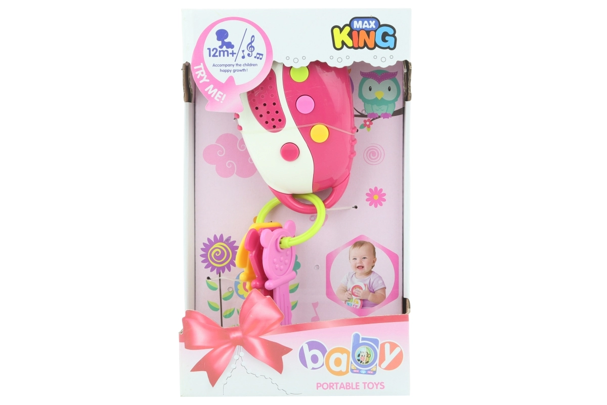 Rožiniai raktai patiems mažiausiems su garso efektais, maitinami dviem AA baterijomis, kurios yra įtrauktos į pakuotę.