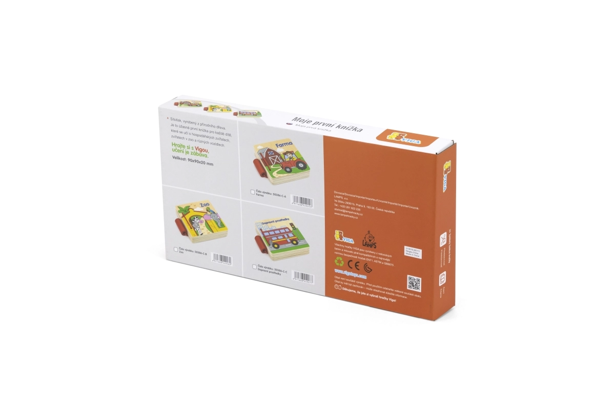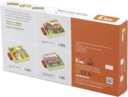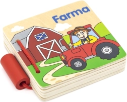 Ši medinė knygelė su ūkio motyvu – puiki priemonė vaikams pirmą kartą susipažinti su gyvūnėlių pasauliu. Patvarūs mediniai puslapiai su ryškiomis iliustracijomis ir čekų kalbos užrašais padeda lavinti smulkiąją motoriką, žodyną ir dėmesio sutelkimą.