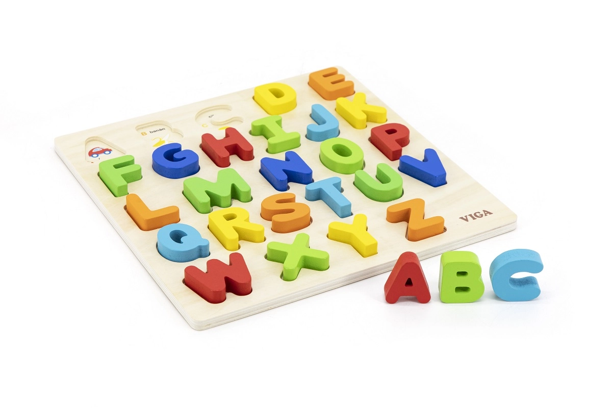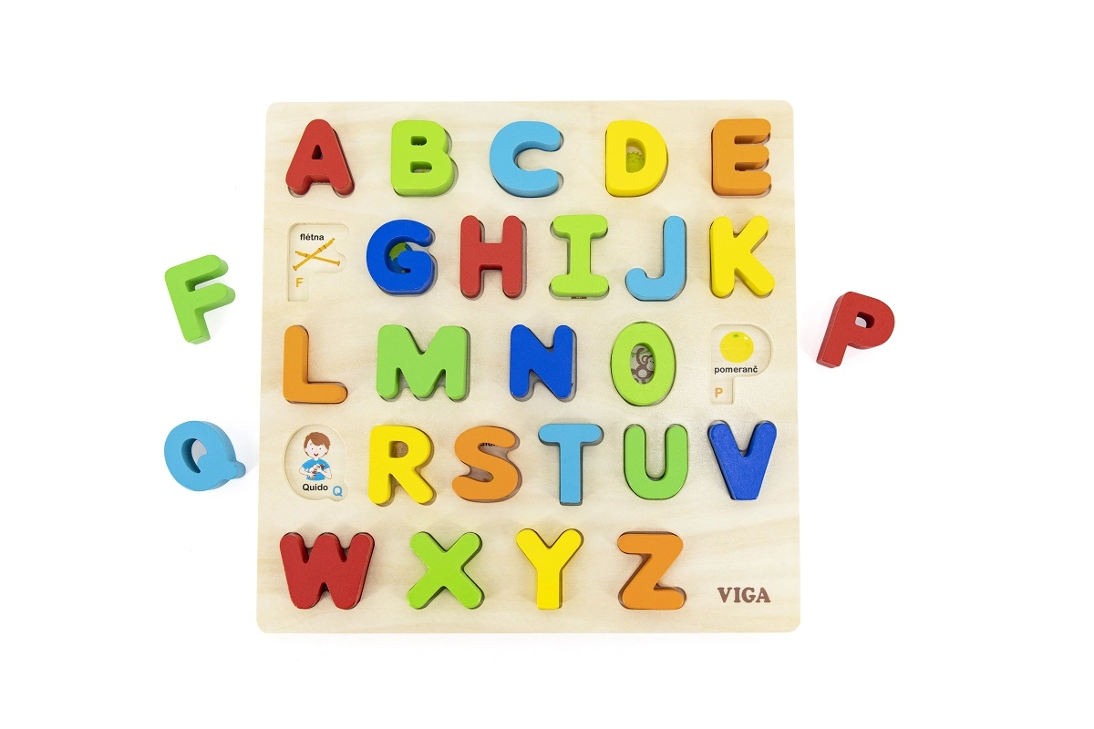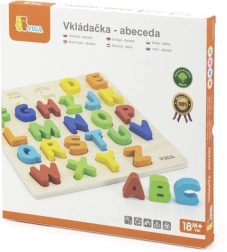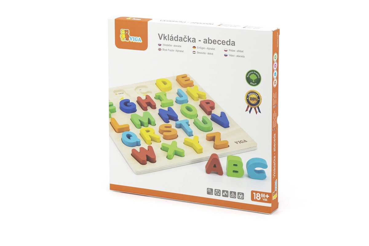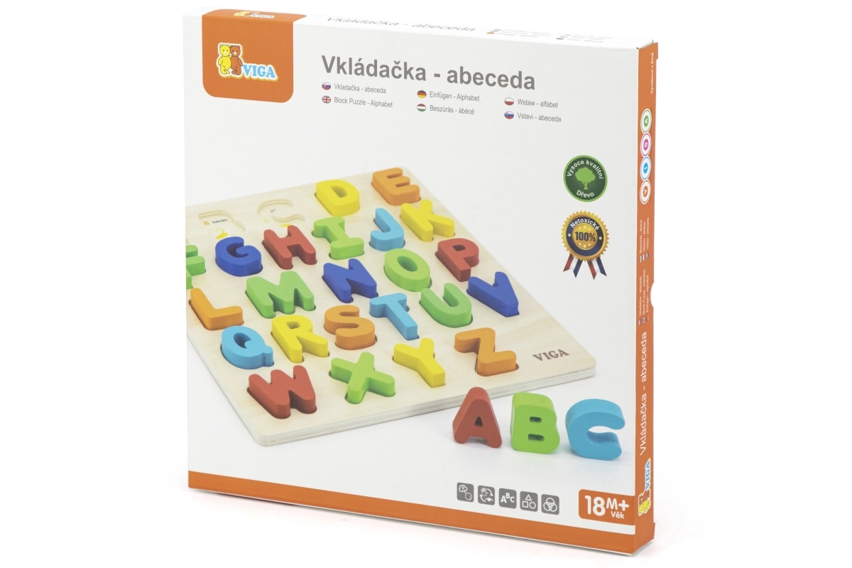 Medinė dėlionė su čekų abėcėlės raidėmis yra ideali žaislas mažiems vaikams nuo 18 mėnesių. Šis žaislas skatina motorinių įgūdžių lavinimą ir abėcėlės pažinimą linksma forma.