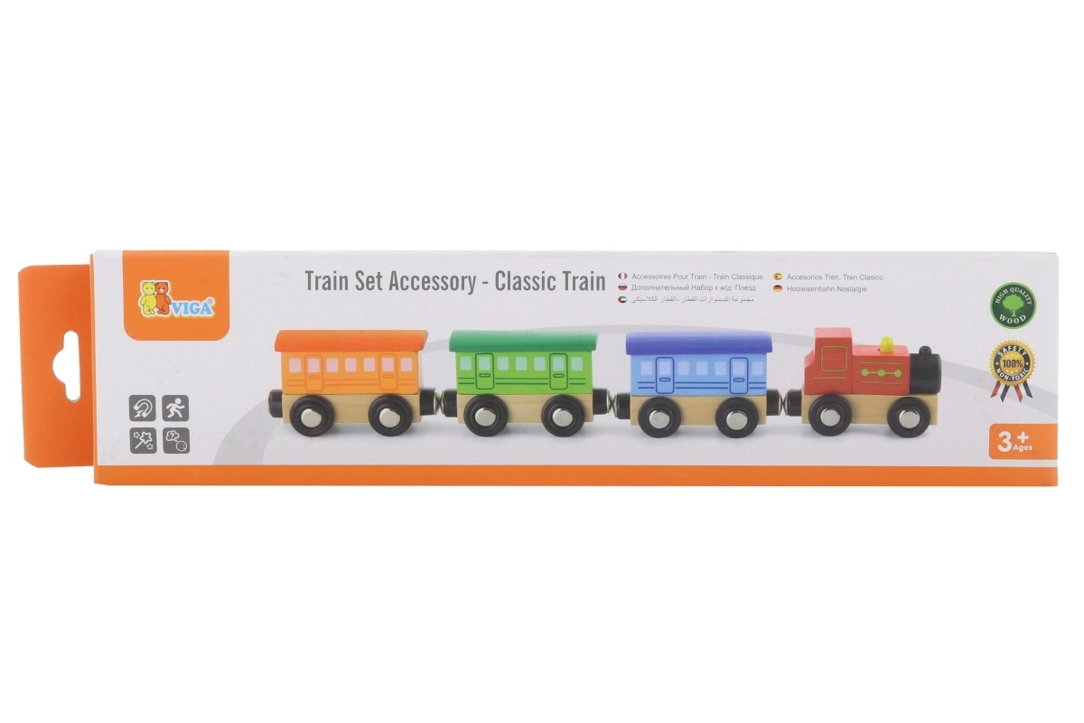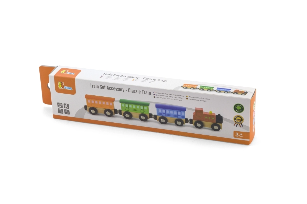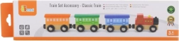 Medinė Klasikinio traukinuko rinkinio versija susideda iš 4 dalių, sujungtų magnetais. Žaislą sukūrė pripažintas medinių žaislų gamintojas Viga Toys. Rinkinį galima naudoti kaip savarankišką žaislą arba kaip papildymą kitoms bėgių trasoms, konstruktoriams ir rinkiniams.